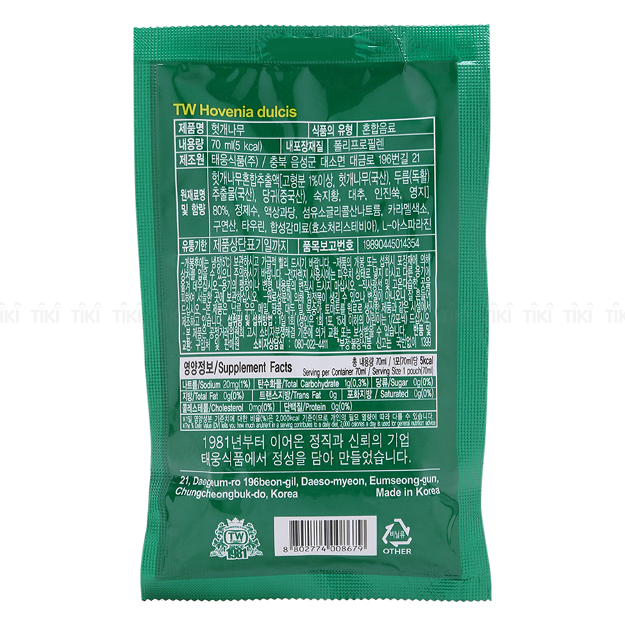 ✨Nước Bổ Gan Mát Gan Taewoong Hovenia Dulcis Hàn Quốc (70ml x 30 Gói)
