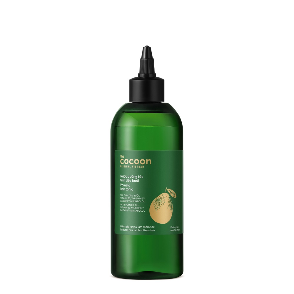 Nước Dưỡng Tóc Cocoon Tinh Dầu Bưởi Pomelo Hair Tonic 310ml là sản phẩm dành cho tóc, phù hợp với tình trạng tóc rụng, tóc yếu, tóc thưa mỏng. Bên cạnh các thành phần chủ đạo của phiên bản hiện tại (tinh dầu bưởi Việt Nam truyền thống, Xylishine, vitamin B5), phiên bản nâng cấp được bổ sung thêm 2 hoạt chất là Baicapil và Bisabolol, hỗ trợ giảm mạnh mẽ tình trạng rụng tóc và tăng cường độ chắc khoẻ cho mái tóc.