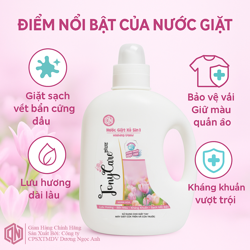 Đặc biệt, Tonycare được sản xuất trên dây chuyền hiện đại, đạt chuẩn ISO 22000, HACCP, đảm bảo an toàn tuyệt đối cho làn da và sức khỏe gia đình. Đây là lựa chọn lý tưởng cho những ai tìm kiếm sự tiện lợi, chất lượng và hương thơm thiên nhiên trong công việc giặt giũ hàng ngày.