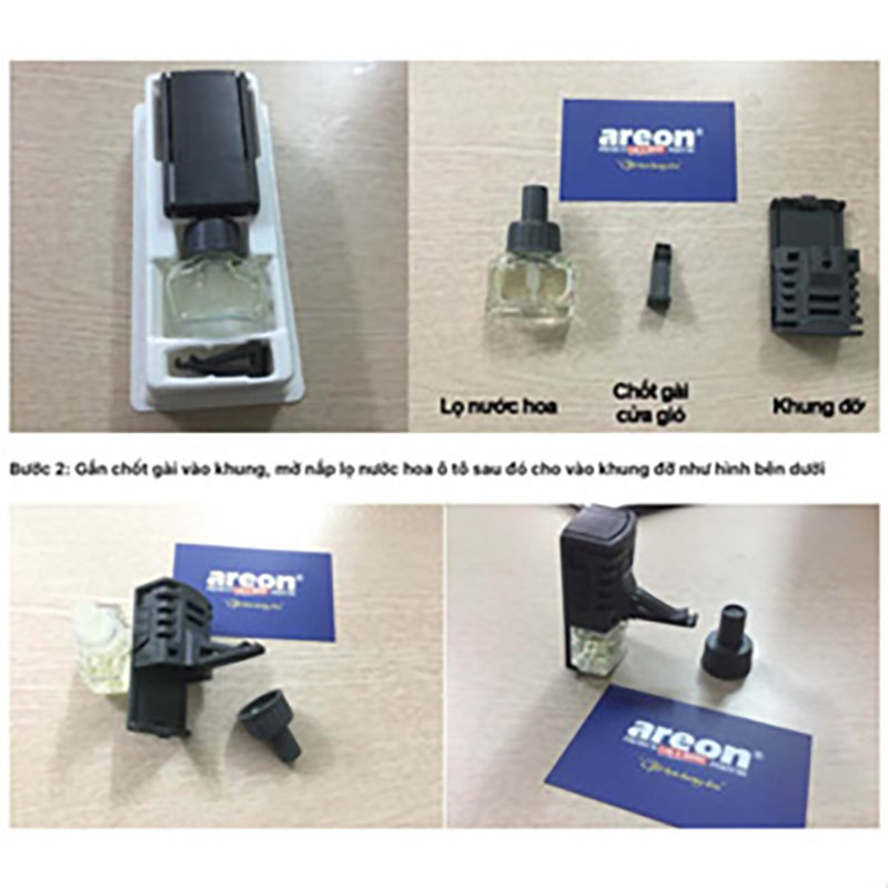 - Bước 2: Gắn chốt gài vào khung, mở nắp lọ nước hoa ô tô sau đó cho vào khung đỡ