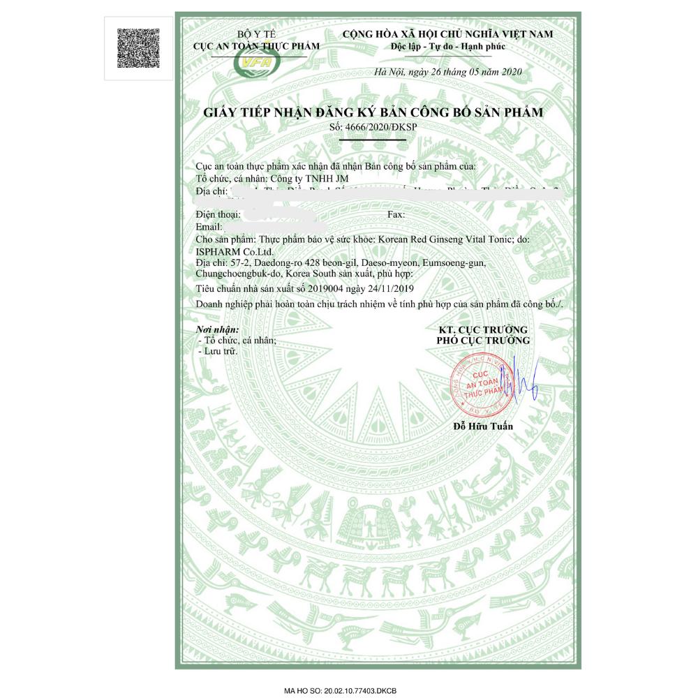 - Nước hồng sâm Hàn Quốc cao cấp Vital Tonic được chế tạo dưới dạng ống tiện dụng bởi bí quyết truyền thống 120 năm của KGC Cheong Kwan Jang sẽ cung cấp nguồn dưỡng chất dồi dào để bảo vệ cơ thể mỗi ngày.