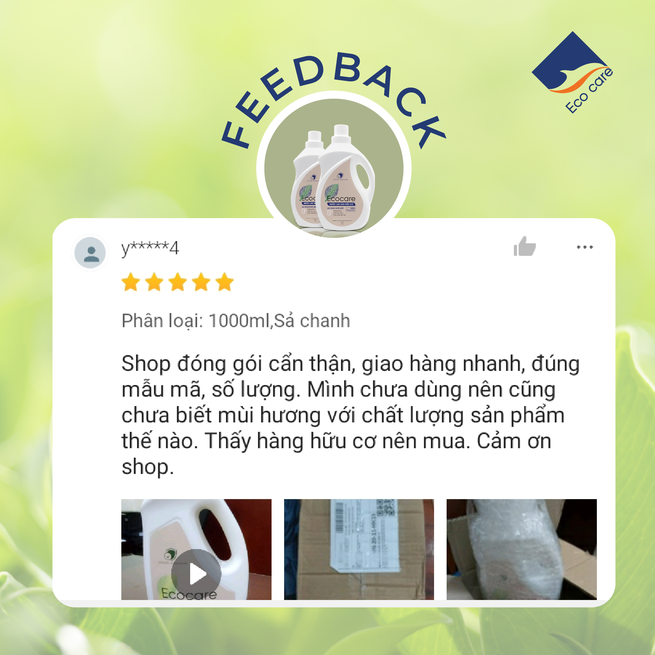 - Sản phẩm Nước lau sàn hữu cơ Bồ hòn Ecocare cam kết: 0% hương liệu, 0% chất tạo màu, 0% chất hóa học độc hại -Hoàn toàn thân thiện với môi trường, sử dụng bao bì là nhựa tái chế