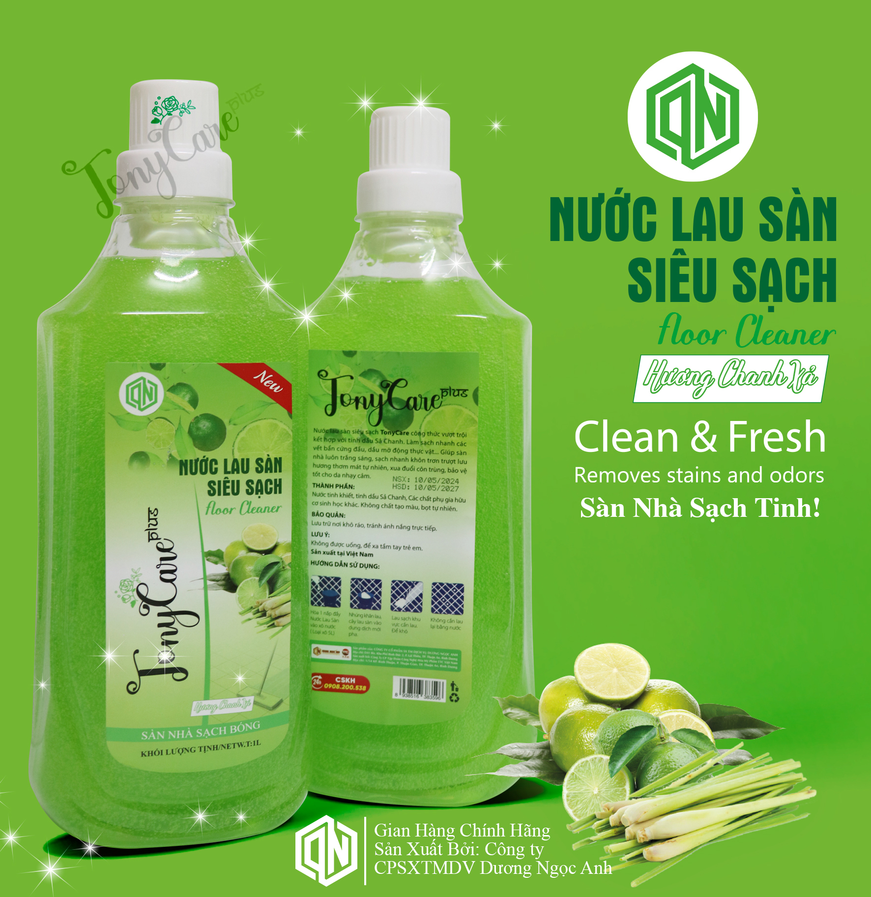 Nước lau sàn Tonycare 1kg – Hương Chanh Sả là lựa chọn lý tưởng giúp ngôi nhà luôn sạch sẽ, thơm mát và an toàn. Với chiết xuất từ chanh sả thiên nhiên, sản phẩm mang lại hương thơm mát dễ chịu, đồng thời có khả năng xua đuổi muỗi và côn trùng hiệu quả.