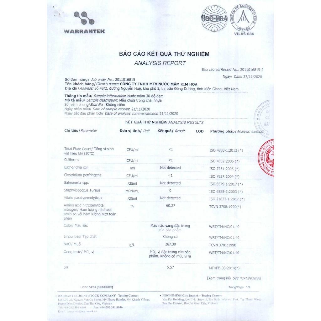 ✨Nước Mắm truyền thống Kim Hoa Phú Quốc 30 độ đạm chai 1 Lít