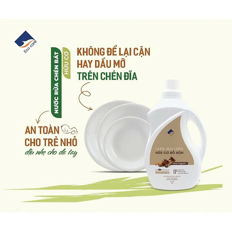 SẢN PHẨM Nước rửa chén hữu cơ Ecocare 4L tinh dầu thiên nhên, nước rửa chén cho bé, an toàn da tay được sản xuất với thành phần tự nhiên, nguồn gốc thực vật ►