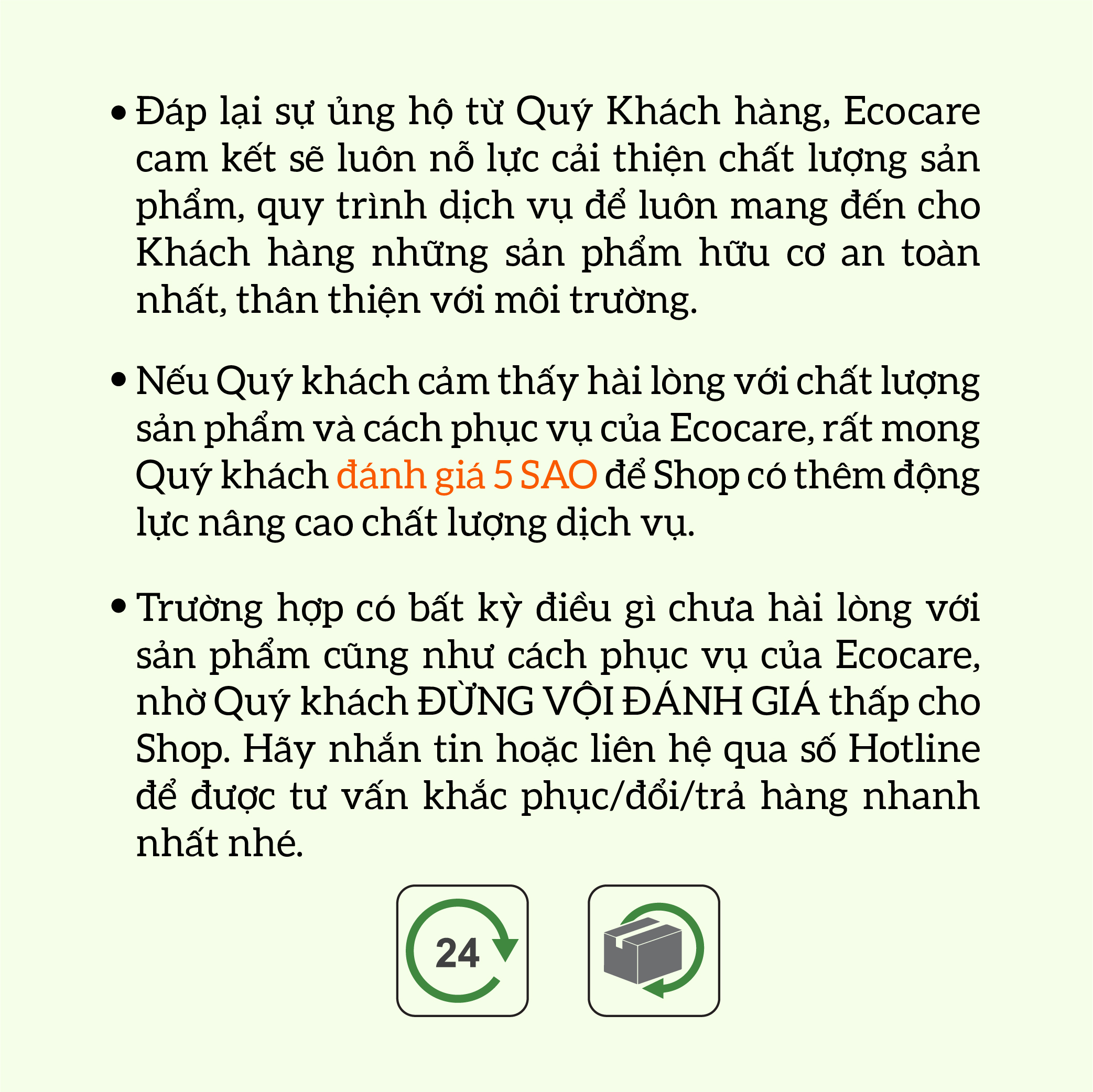 • Sản phẩm Ecocare cam kết: