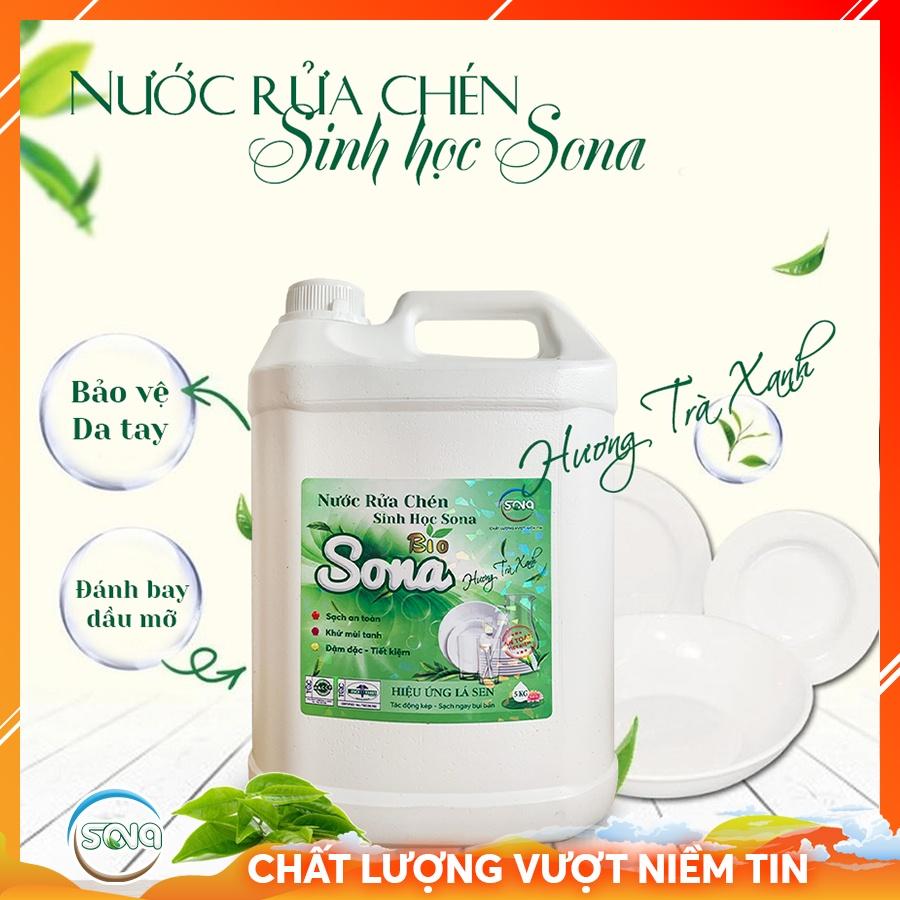 Nước rửa chén sinh học SONA 5kg sạch bong sáng bóng 100% thiên nhiên can to tiết kiệm hương quế, trà xanh sạch siêu tốc tiết kiệm nước không hại da tay