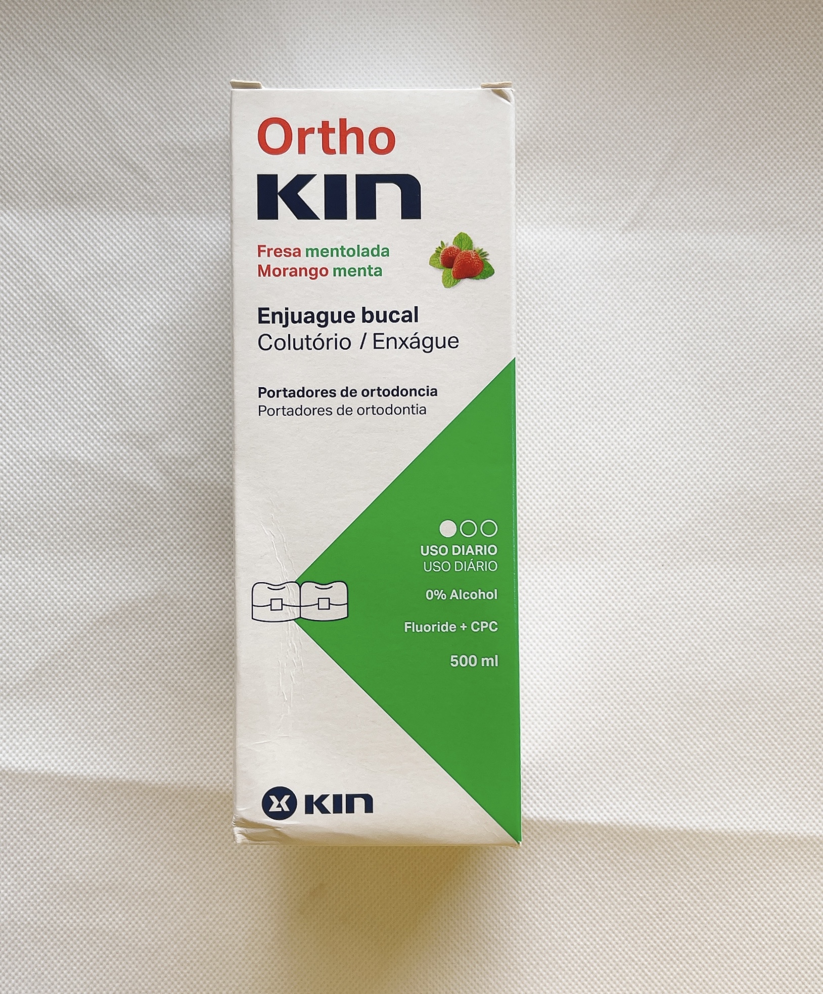 NƯỚC SÚC MIỆNG CHUYÊN DỤNG DÀNH CHO RĂNG CHỈNH NHA ORTHO KIN CHỨA FLUORIDE, CPC CÙNG CÁC KHOÁNG CHẤT BỔ SUNG CHO RĂNG VÀ NƯỚU CHẮC KHỎE CÙNG HƠI THỞ THƠM MÁT VỊ DÂU TÂY HÒA QUYỆN CÙNG HƯƠNG BẠC HÀ MÁT...