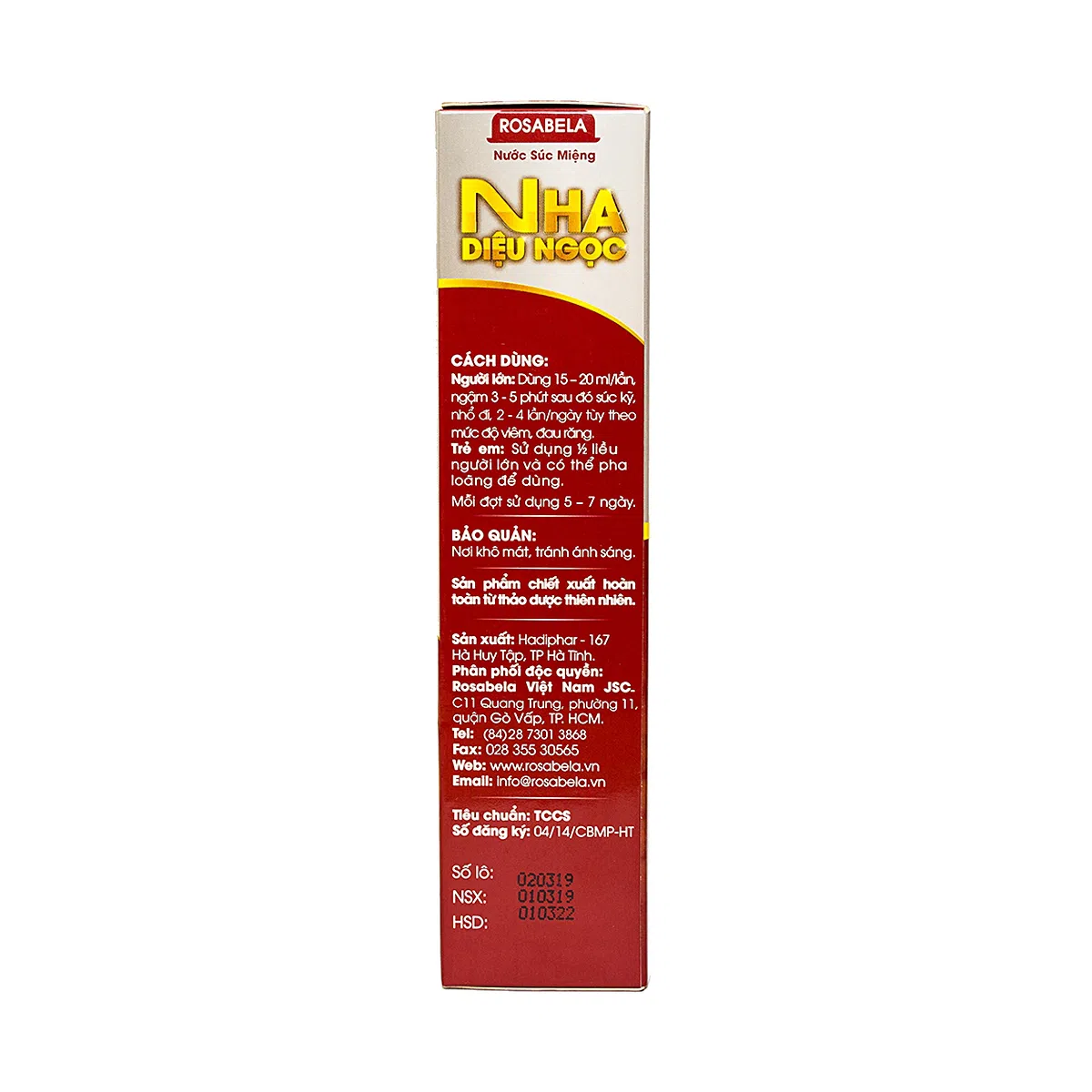 Mua tại Tiktok- Nước Súc Miệng Rosabela Nha Diệu Ngọc (200ml) chiết xuất hoàn toàn từ thảo dược hỗ trợ giảm đau, giảm viêm, khử mùi hôi, ngăn ngừa các bệnh viêm nhiễm về răng miệng, giúp phòng ngừa và ngăn chặn các bệnh răng miệng hiệu quả, an toàn.
