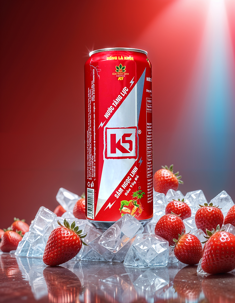 Nước Tăng Lực K5 Sâm Ngọc Linh Lốc 6 Lon Vị Dâu Tây Đỏ là sản phẩm nước giải khát mới nhất từ Sâm Ngọc Linh K5. Bên cạnh thành phần chính là Sâm Ngọc