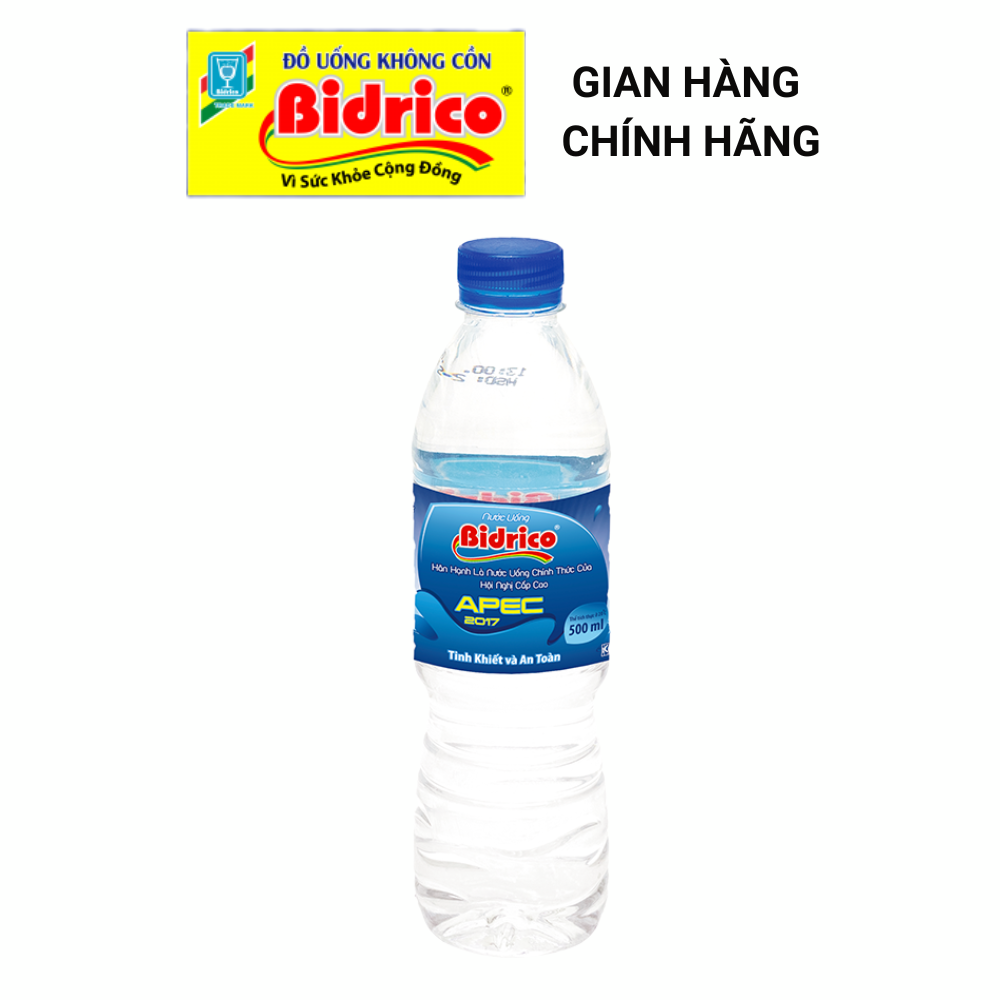Nước Uống Bidrico ( Thùng 24 chai 500ml ) Tinh khiết và an toàn Nước uống Bidrico chai 500ml hân hạnh là nước uống chính thức tại hội nghị cấp cao APEC 2017. Thông tin