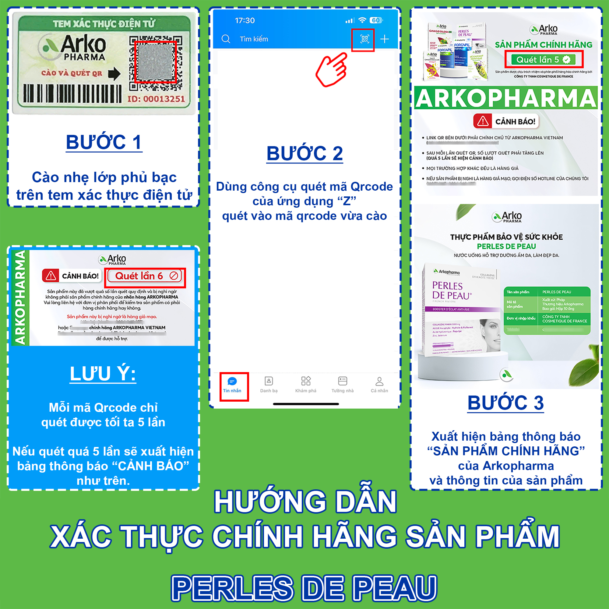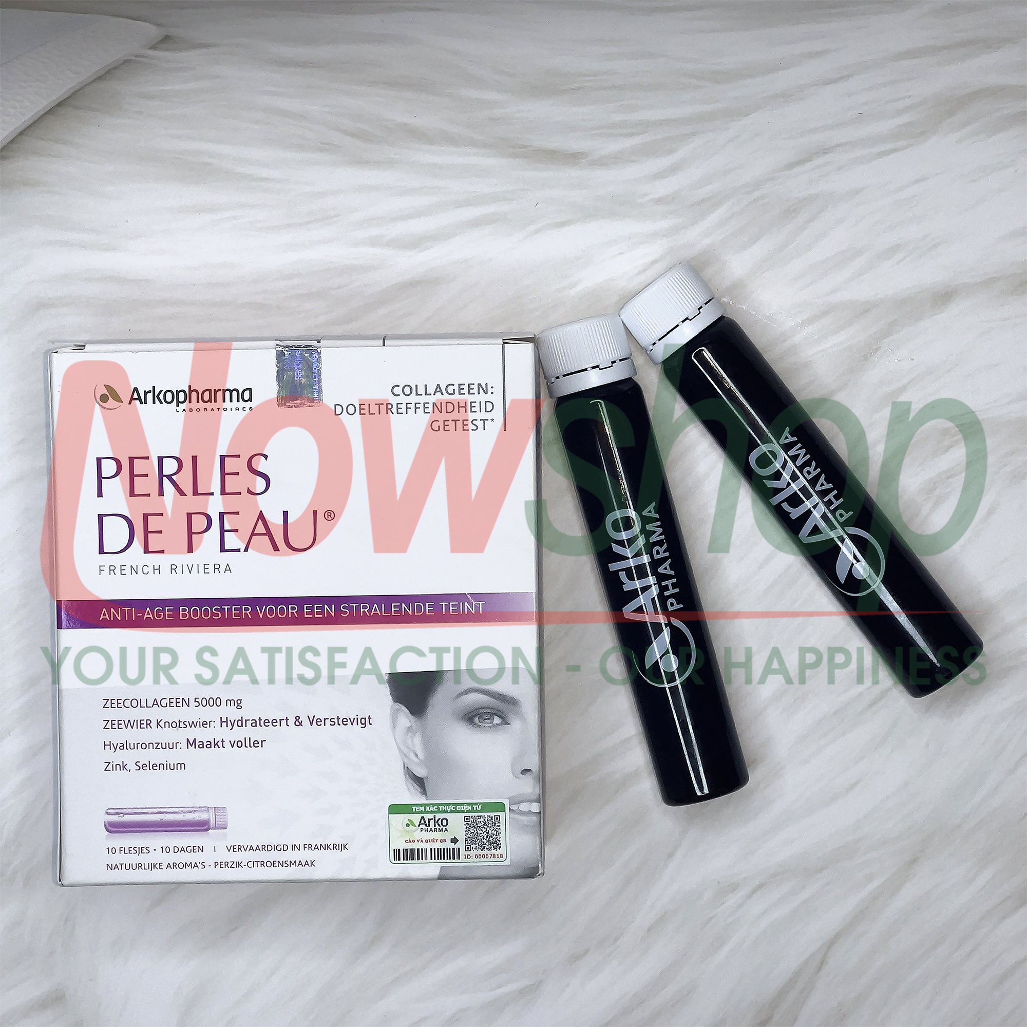 Arkopharma Perles De Peau – bí quyết trẻ hóa da chuẩn Pháp . – Giúp duy trì làn da mịn màng, ẩm mượt, săn chắc và tươi trẻ từ bên trong. Collagen cá thủy phân 5000mg – hấp thu nhanh, giảm nếp nhăn hiệu quả. Công thức 5 trong 1: Collagen + HA + Tảo nâu + Kẽm + Selen – dưỡng ẩm & chống lão hóa toàn diện. Hương đào – chanh thanh mát, dễ uống, không tanh – chăm da mỗi ngày chỉ 1 ống . Hiệu quả rõ rệt sau 2–4 tuần sử dụng đều đặn. Thương hiệu Arkopharma France – hơn 40 năm uy tín – Công thức khoa học, an toàn, hiệu quả nhanh Nhập khẩu chính hãng Pháp – Hóa đơn chứng từ đầy đủ 100%.     Xuất xứ: France (Pháp) Quy cách: Hộp 10 ống x 25ml     THÀNH PHẦN Collagen Marin 5.000mg – Nuôi dưỡng da săn chắc, tăng độ đàn hồi, giảm nếp nhăn và chảy xệ. Chiết xuất tảo nâu 180mg – Chống oxy hóa, bảo vệ da khỏi gốc tự do, duy trì làn da khỏe mạnh. Axit Hyaluronic 40mg – Dưỡng ẩm sâu, giúp da căng mọng, mềm mịn, giảm khô ráp. Kẽm 1,5mg – Hỗ trợ tái tạo tế bào da, giảm viêm, làm da đều màu và khỏe mạnh. Selenium 8,3mcg – Chống oxy hóa, bảo vệ tế bào da, ngăn lão hóa sớm.     CÔNG DỤNG Dưỡng ẩm sâu, giảm khô ráp, bong tróc. Tăng đàn hồi, giúp da căng bóng, săn chắc. ️ Chống oxy hóa, ngăn ngừa lão hóa sớm. Làm sáng da, hỗ trợ giảm sạm nám, tàn nhang. Giúp da mềm mịn, mượt mà và tràn đầy sức sống.     ĐỐI TƯỢNG SỬ DỤNG Người có da khô, thiếu ẩm, dễ xuất hiện nếp nhăn. Người muốn da sáng mịn, đàn hồi, tươi trẻ tự nhiên. Phụ nữ sau 25 tuổi hoặc sau sinh – da yếu, dễ lão hóa. Người thức khuya, stress, tiếp xúc nắng nóng, khói bụi.     HƯỚNG DẪN SỬ DỤNG Uống 1 ống (25ml)/ngày – tốt nhất sau bữa sáng. Lắc nhẹ trước khi uống – có thể uống trực tiếp hoặc pha với nước mát . Duy trì 2–3 tháng liên tục để thấy hiệu quả rõ rệt .     ️ LƯU Ý KHI SỬ DỤNG SẢN PHẨM KHÔNG PHẢI LÀ THUỐC VÀ KHÔNG CÓ CHỨC NĂNG THAY THẾ THUỐC CHỮA BỆNH Hiệu quả của sản phẩm tùy thuộc vào cơ địa và thể trạng của mỗi người Không dùng cho người dị ứng cá, hải sản hoặc nhạy cảm với Iốt. Tránh dùng cho phụ nữ mang thai, cho con bú, trẻ em <18 tuổi.       CÁCH BẢO QUẢN Dùng ngay sau khi mở nắp, tránh để tiếp xúc không khí quá lâu. ️ Bảo quản nơi khô ráo, thoáng mát, tránh ánh nắng trực tiếp, tốt nhất dưới 25ºC. Để xa tầm tay trẻ em.     KHUYẾN CÁO Khi nhận hàng, Quý Khách vui lòng: Kiểm tra sản phẩm ngay khi nhận Quay video nhận và mở đơn hàng khi Shipper giao Điều này giúp thuận tiện cho việc đổi trả nếu có sai sót từ Shop hoặc vận chuyển.     ️ CAM KẾT VÀNG TỪ SHOP Sản phẩm chính hãng - Giống với mô tả - Xuất Hóa đơn giá trị gia tăng 100% Nguồn gốc rõ ràng - Giấy tờ đầy đủ theo quy định của Bộ Y Tế Đảm bảo chất lượng - Dịch vụ tốt nhất (Nhiều Voucher giảm giá kèm nhiều quà tặng hấp dẫn) Hỗ trợ tư vấn 24/7 - Đổi trả miễn phí (Khi có lỗi khách quan) Đóng gói cẩn thận - Giao hàng nhanh chóng (Nhận hàng từ 1-5 ngày kể từ khi đặt hàng tại shop)