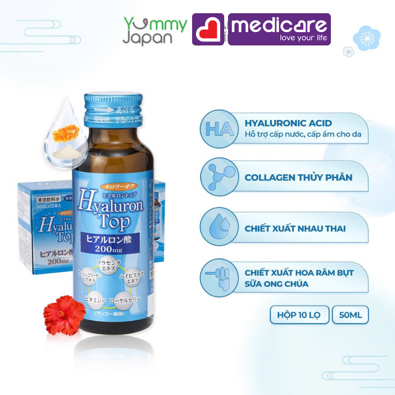 NƯỚC UỐNG CẤP ẨM HYALURON TOP SHINNIPPAI 200MG HỘP 10 LỌ 50ML TRÍCH ĐOẠN SẢN PHẨM: Nước uống cấp ẩm hyaluron top shinnippai tăng cường đàn hồi, tái tạo làn da, sản phẩm được