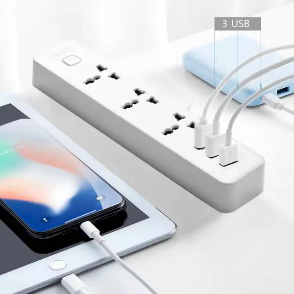 Ổ cắm 3 ổ đa năng + 2 ổ cắm USB cách điện bền đẹp - Chịu nhiệt, chống cháy: 750 độ C - Chiều dài dây điện: 1.8 mét - Chân tiếp xúc với