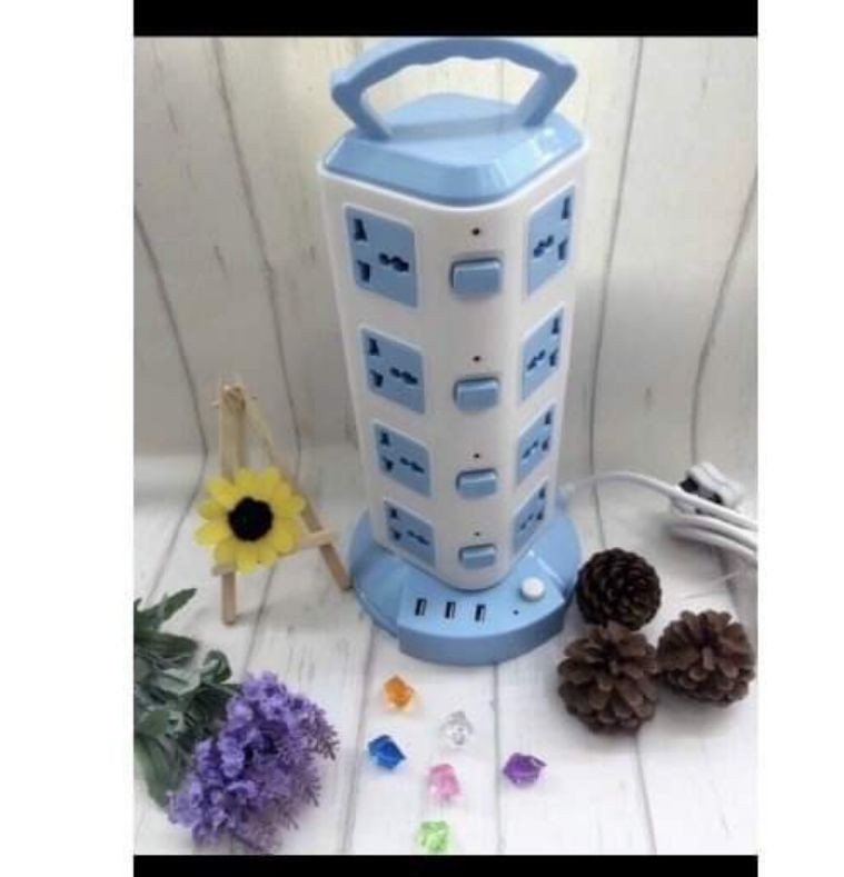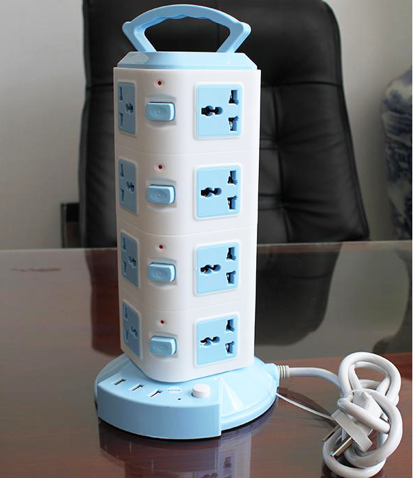 - Ổ cắm điện 4 tầng có công tắc và có đèn led báo hiệu riêng cho từng tầng, . Có 16 lỗ cắm điện nhà và 3 cổng sạc USB 5V dùng sạc điện thoại, máy tính bảng,