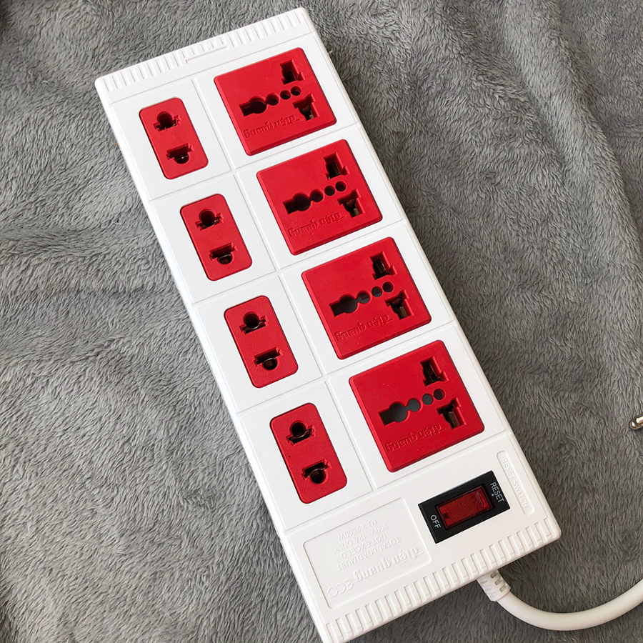Ổ cắm đa năng cách điện bền đẹp. Chịu nhiệt, chống cháy: 750ºC Chống sét ( có dây tiếp đất) Chiều dài dây điện: 3 mét * CHI TIẾT SẢN PHẨM Chân tiếp xúc với