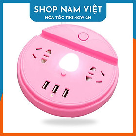 ✨Ổ Cắm Điện Tròn 3 Cổng USB Chống Giật, Có Đèn Ban Đêm, Kèm Đế Điện Thoại, Chịu Tải 2500W