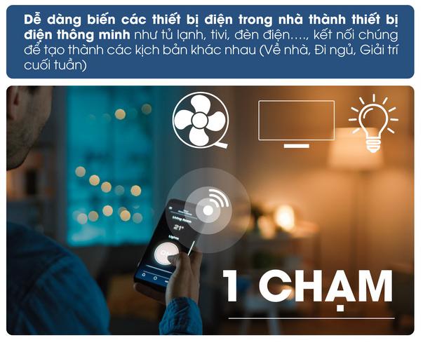 Có thể điều khiển từ xa và theo dõi trạng thái bật/tắt của thiết bị thông qua ứng dụng trên điện thoại, bạn sẽ không còn phải lo lắng khi ra khỏi nhà mà quên tắt điện.