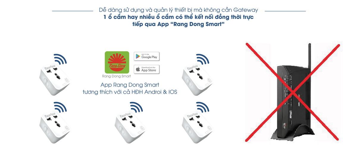Có thể hoạt động độc lập mà không cần bộ xử lí trung tâm, chỉ cần kết nối với mạng wifi 2,4Ghz, cài ứng dụng Rang Dong Smart, Tuya Smart hoặc SmartLife và sử dụng