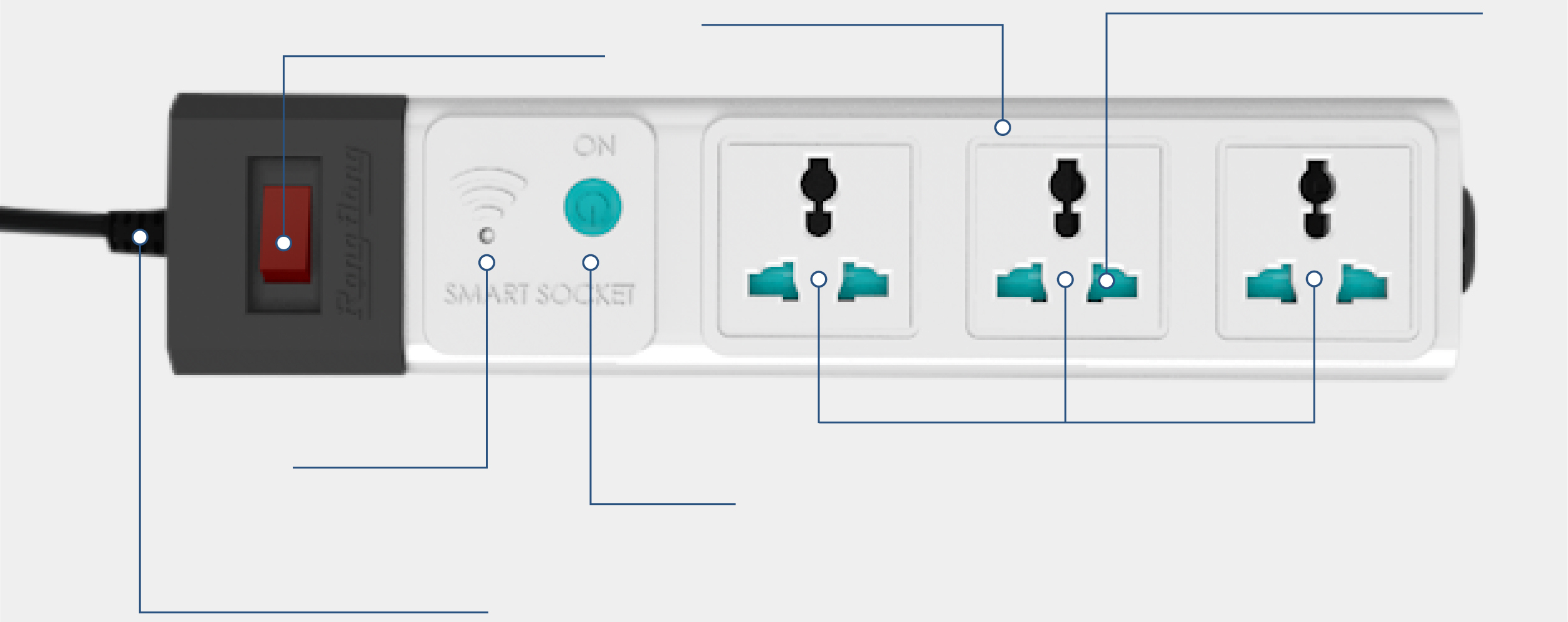 Ổ cắm đa năng cách điện bền đẹp. Chịu nhiệt, chống cháy: 750ºC Chống sét ( có dây tiếp đất) Chiều dài dây điện: 3 mét * CHI TIẾT SẢN PHẨM Chân tiếp xúc với