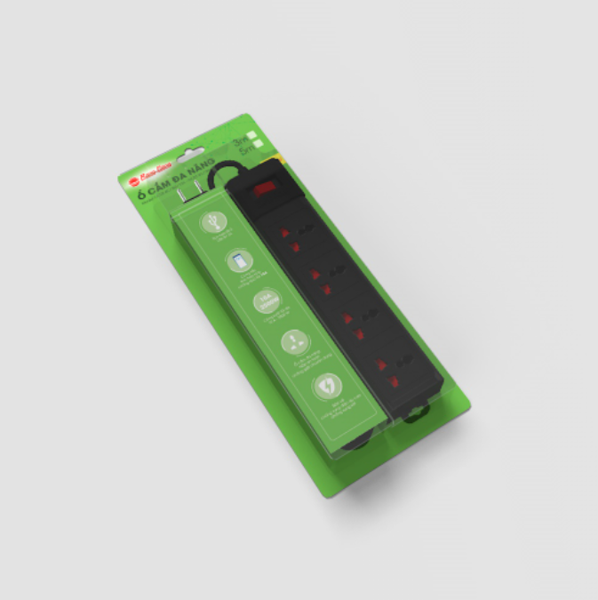 Ổ cắm 3 ổ đa năng + 2 ổ cắm USB cách điện bền đẹp - Chịu nhiệt, chống cháy: 750 độ C - Chiều dài dây điện: 1.8 mét - Chân tiếp xúc với