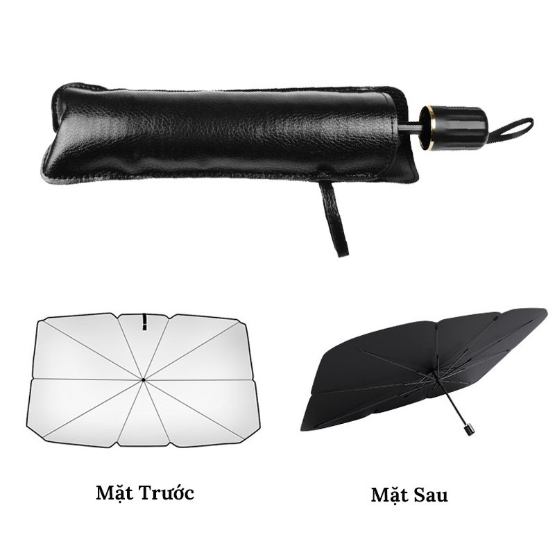 THÔNG TIN SẢN PHẨM: - Kích thước ô che nắng ô tô nhỏ gọn, tiện lợi phù hợp với nhiều hãng xe - Màu sắc: ô chắn nắng hiện có 1 màu đen duy nhấtt - Chất liệu: Dù che nắng ô tô được làm từ vải cách nhiệt phủ bạc titan, thép sơn tĩnh điện