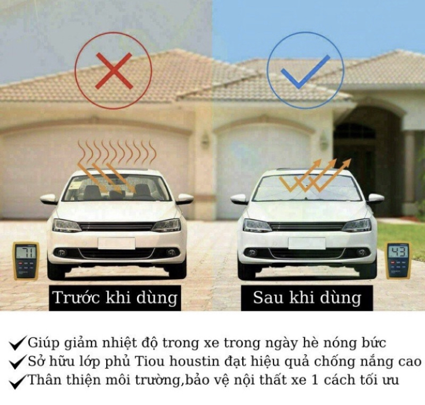 -Có thiết kế thông minh, cùng chất liệu cao cấp sử dụng sản phẩm giúp ngăn cản nhiệt, ánh nắng trực tiếp chiếu vào bên trong xe.