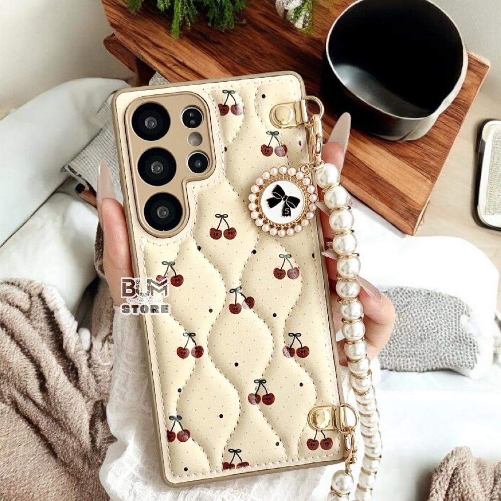 Ốp Lưng TPU Chỉ Nổi Quả Cherry Kèm Dây Ngọc Cho Samsung S25 Ultra / S25 PLus / S24 PLus / S24 Ultra / S23 Ultra Chất Liệu : Nhựa TPU dẻo dày dặn Mặt lưng simili chống vân tay , hạn chế bám bẩn , dễ dàng vệ sinh In Hoạt tiết Cherry xinh xắn Đính kèm dây xỏ tay ngọc trai sang trọng, tiện lợi HOẶC charm nơ xinh xắn Có đệm bảo vệ cụm camera Có lỗ xỏ dây đeo