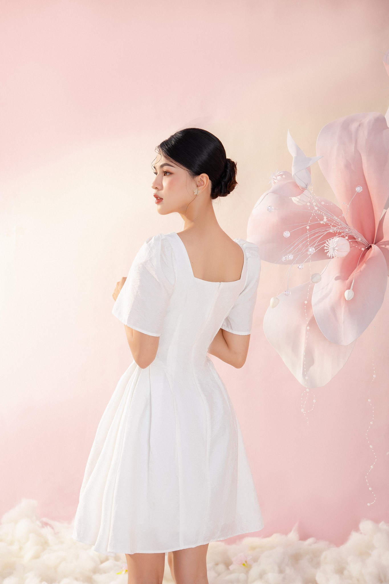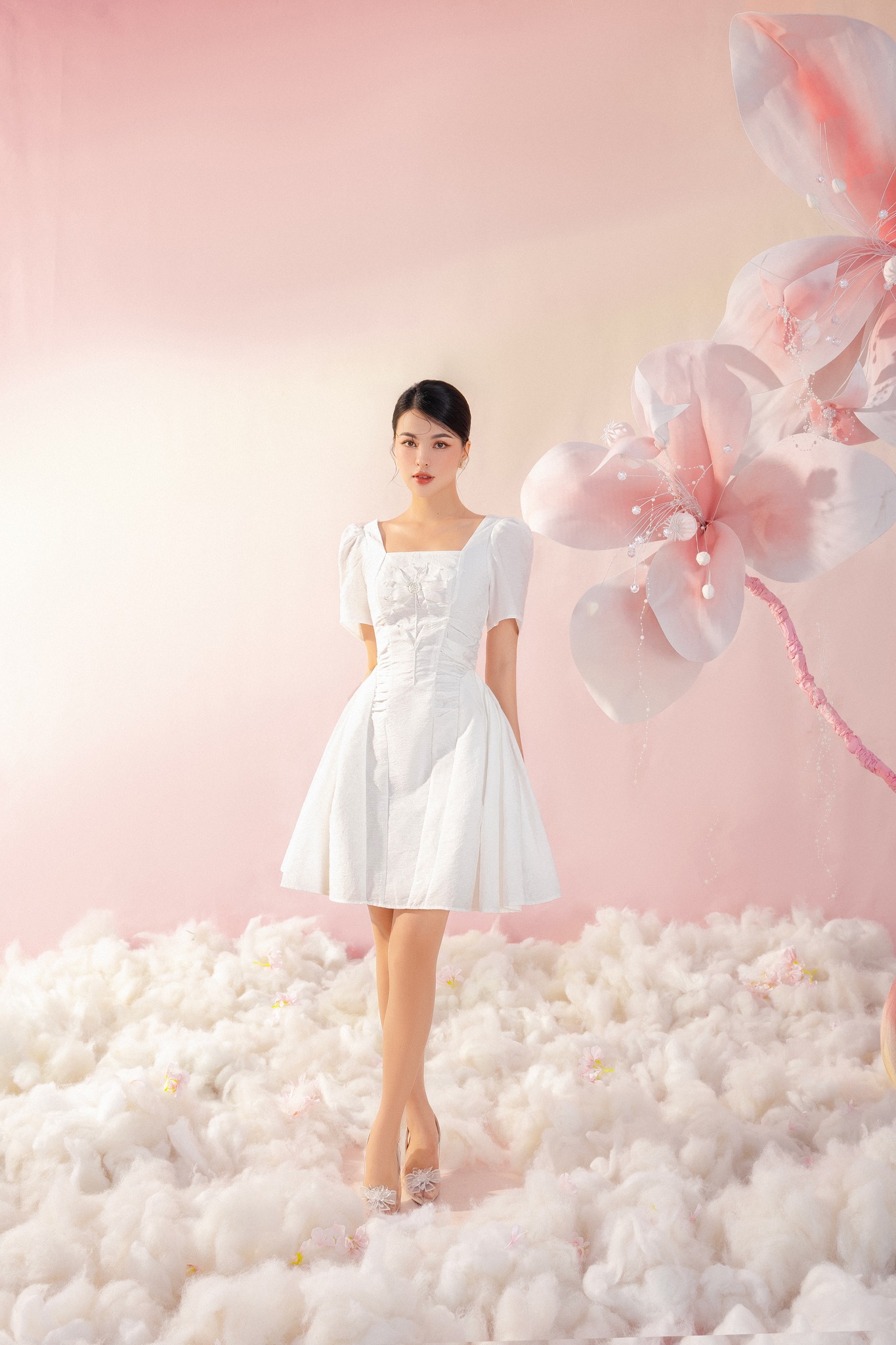 ღ THÔNG TIN SẢN PHẨM:   Tên sản phẩm: Đầm kem cổ xếp tầng   Chất liệu: Chất tơ   Chi tiết sản phẩm: có lót, không túi   Thông số size: S, M, L,