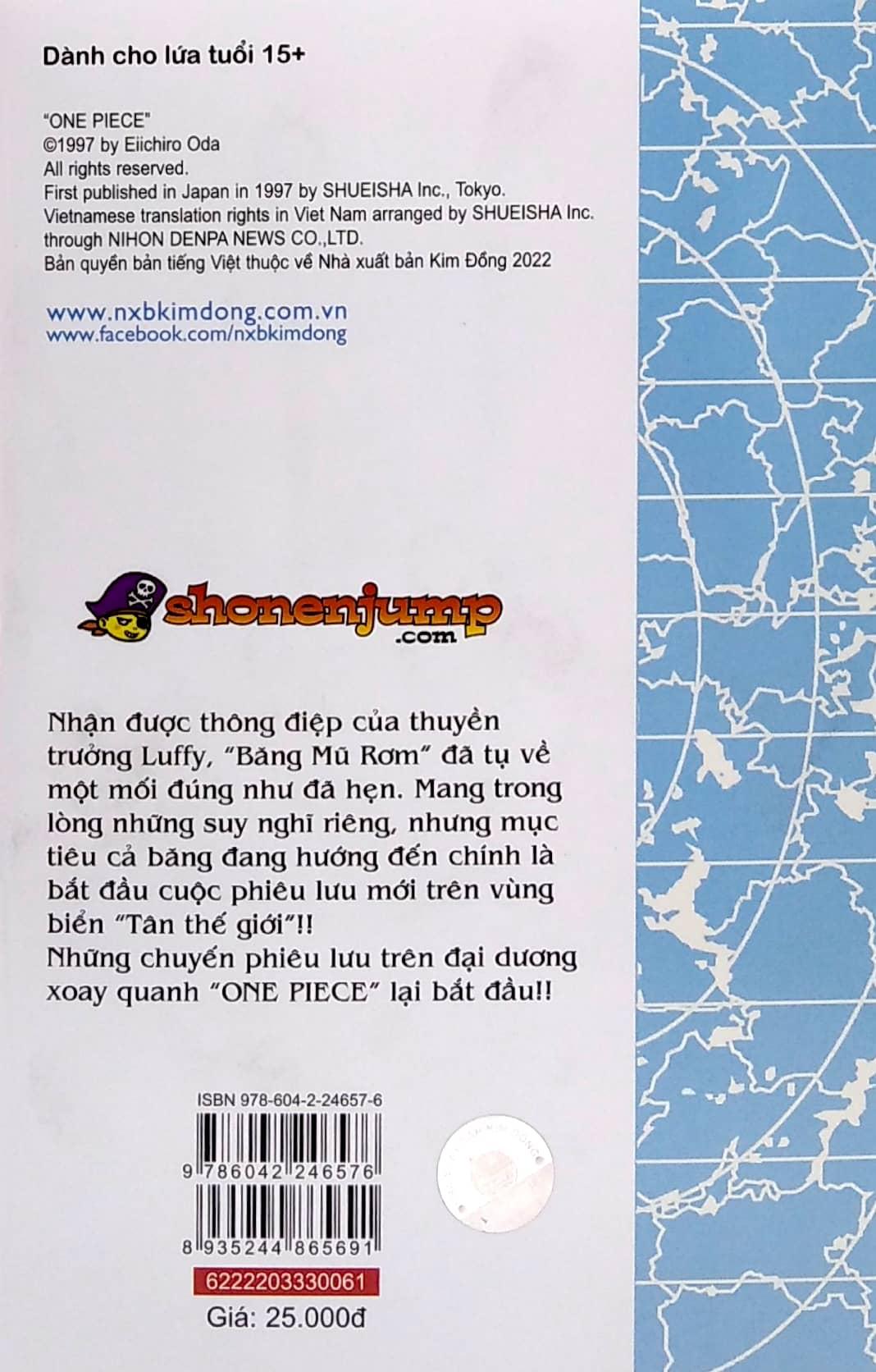 Mua tại TiktokOne Piece Tập 61: Romance Dawn For The New World (Tái Bản 2022) Nhận được thông điệp của thuyền trưởng Luffy, "Băng Mũ Rơm" đã tụ về một mối đúng như đã hẹn, nhưng mục tiêu cả băng đang hướng đến chính là bắt đầu cuộc phiêu lưu mới trên vùng biển "Tân thế giới"!! Những chuyến phiêu lưu trên đại dương xoay quanh "ONE PIECE" lại bắt đầu!!