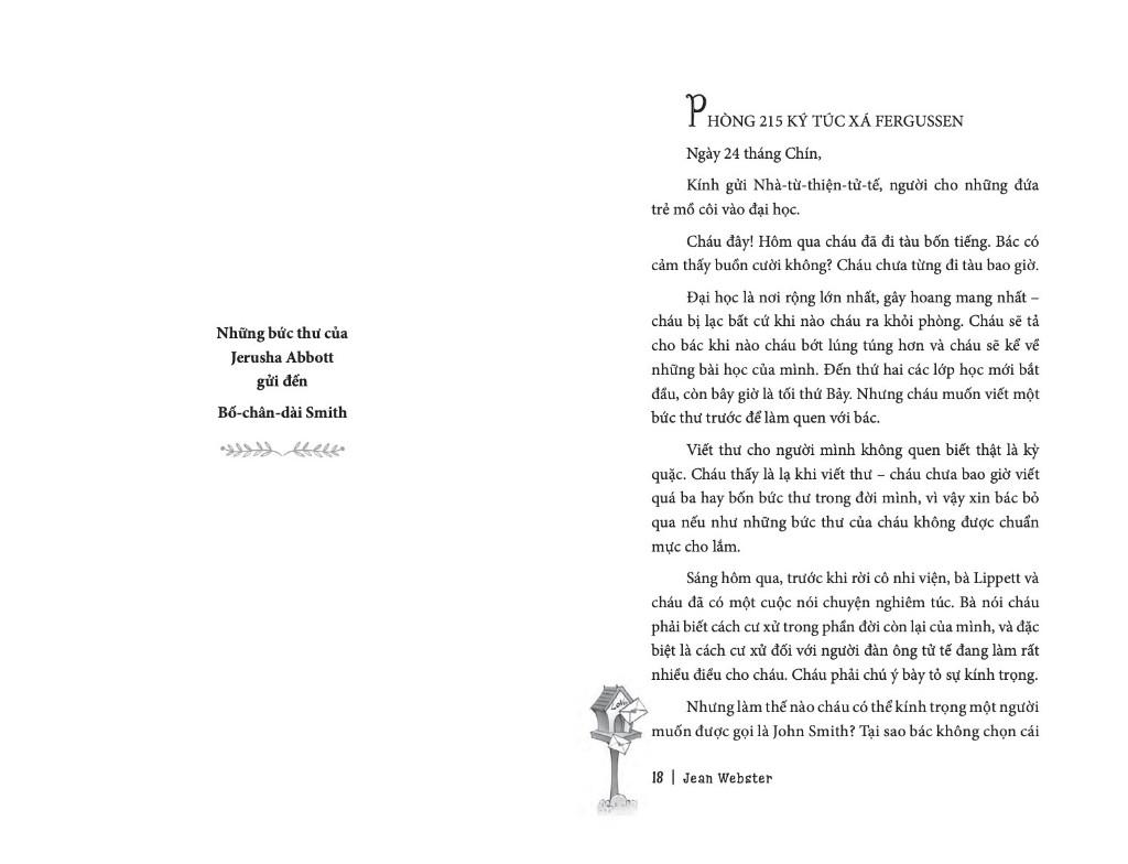 Jean Webster là bút danh của Alice Jane Chandler Webster - nữ nhà văn người Mỹ nổi tiếng với các tiểu thuyết như: Ông bố chân dài (Daddy-Long-Legs), Kẻ thù thân yêu (Dear Enemy)