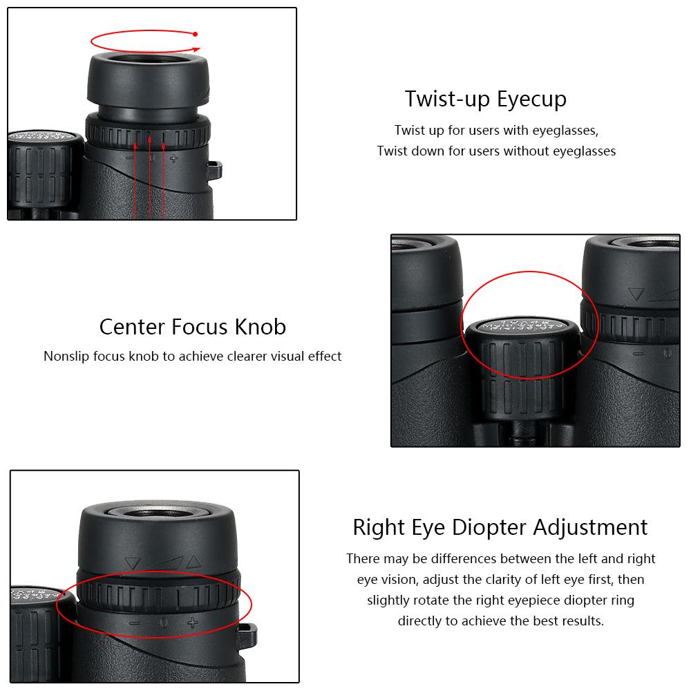 This compact and lightweight binocular is coated with green film and 10X magnification, which can provide you with brighter view, great for outdoor hunting, bird watching, hiking, sporting events and other activities.