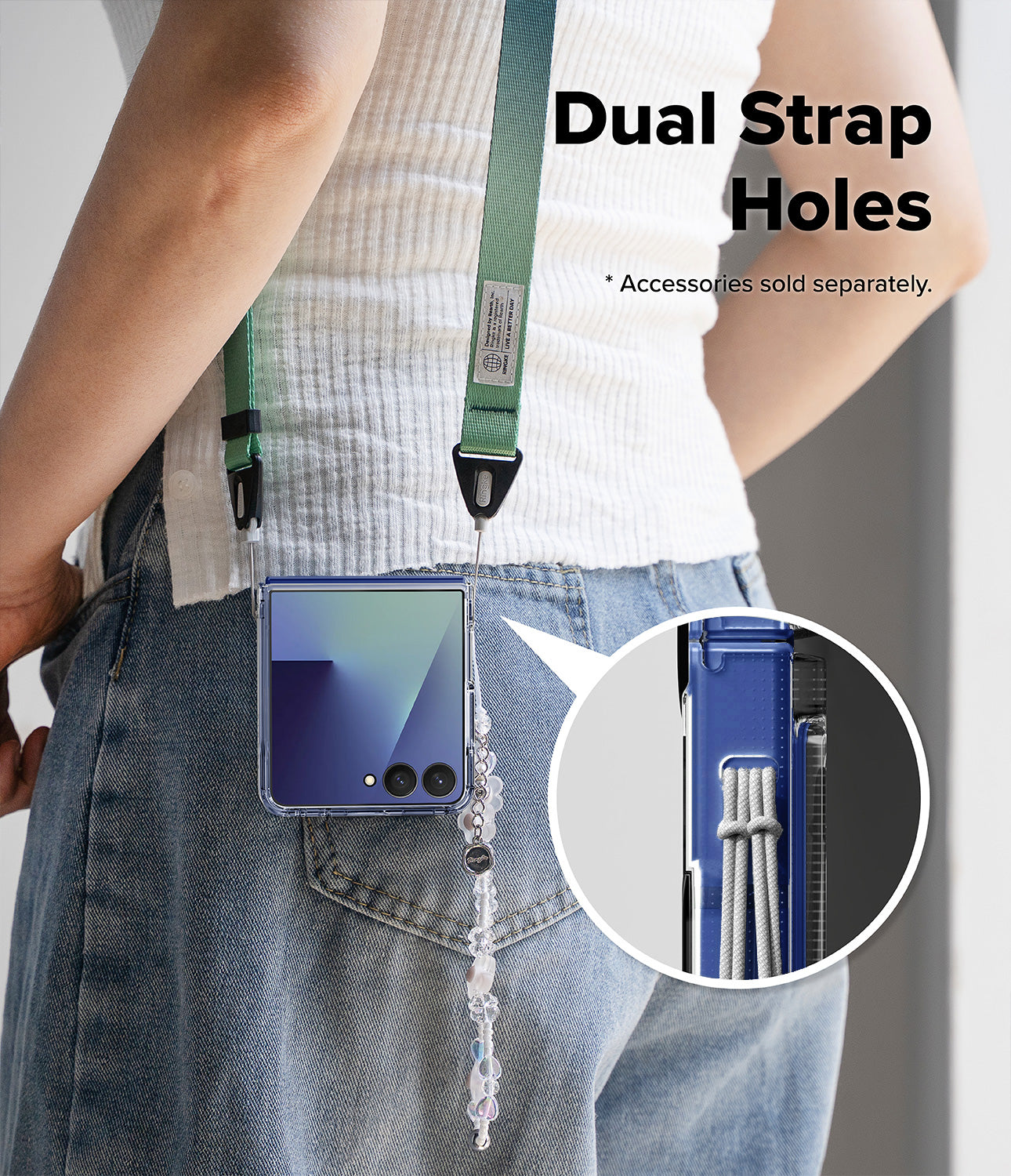 Kích thước lỗ xỏ dây đeo cải tiến cho phép treo (móc) được 2 phụ kiện cùng lúc. Lưu ý: dây đeo được bán riêng. Hình ảnh chỉ minh họa cách sử dụng sản phẩm.