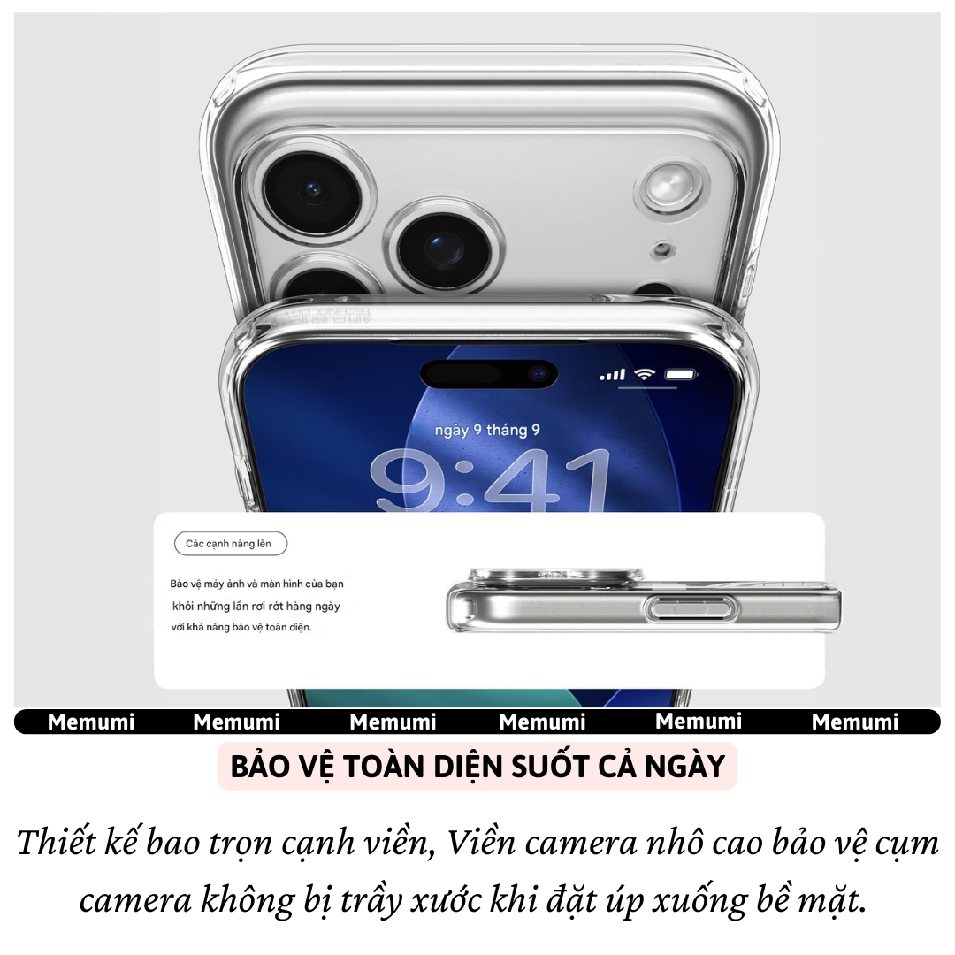 * Thông tin sản phẩm + Vật liệu: TPU, Kính + Độ dày TPU: 1.96mm +Trọng lượng: ~ 29.5g (iP 14/14 Pro 6.1"), ~ 34g (iP 14 Plus/14 Pro Max) ------------- TÍNH NĂNG SẢN PHẨM
