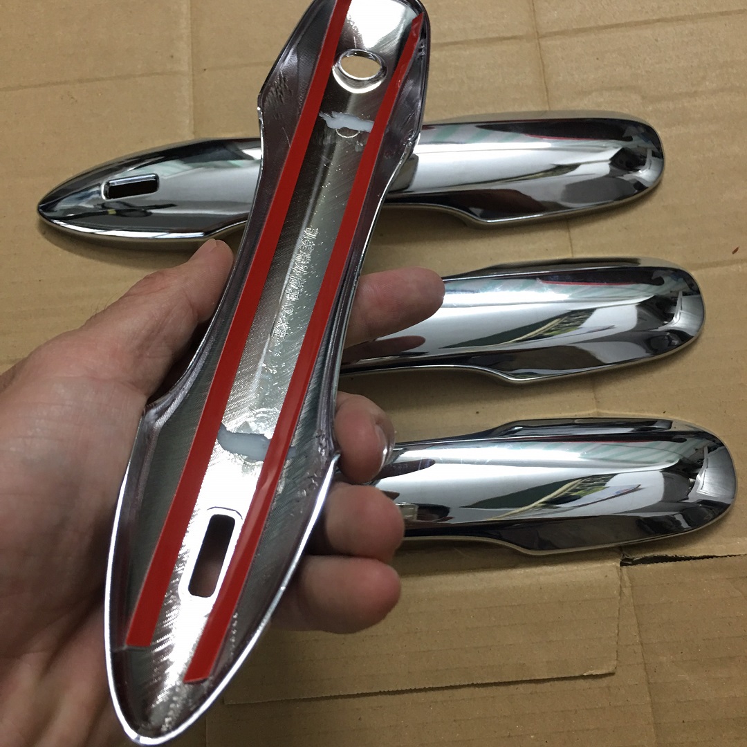 Hõm + tay cửa xe làm bằng chất liệu nhựa ABS mạ crom sáng bóng sang trọng không bong tróc hay xỉn màu.
