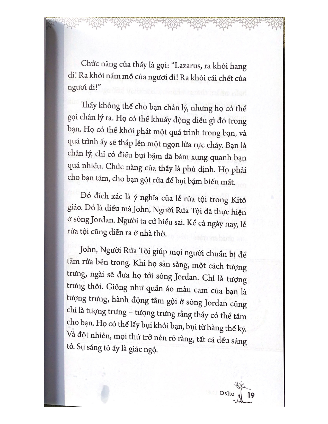 Với Osho, Thiền không phải là giáo huấn, mà là tiếng chuông giúp bạn thức tỉnh. Bởi vì mỗi cá nhân chúng ta đều đang say ngủ, và giấc ngủ này phải bị phá vỡ.