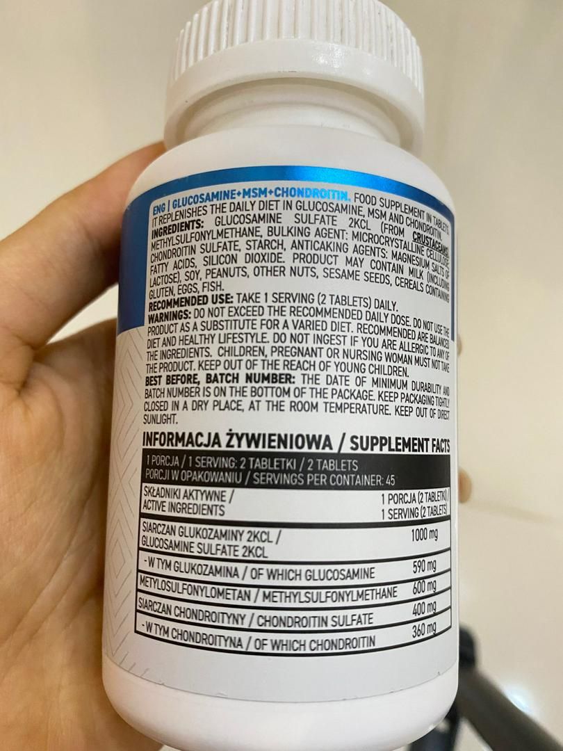- Tên sản phẩm: Ostrovit Glucosamine + MSM + Chondroitin - Thương hiệu: Ostrovit - Xuất xứ: Ba Lan -------------------------------------- 1. Giới thiệu sản phẩm: - Glucosamine + MSM + Chondroitin là một sản phẩm