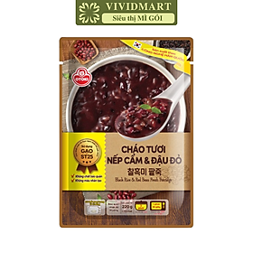 • THÙNG 20 GÓI   KHỐI LƯỢNG: Cháo tươi Ottogi vị Nếp cẩm & đậu đỏ: 220g/gói   HẠN SỬ DỤNG: 18 tháng kể từ ngày sản xuất   HƯỚNG DẪN SỬ DỤNG: Ngon hơn khi dùng nóng với các cách sau: Cách 1: Mở gói, cho sản phẩm vào tô, hâm nóng trong lò vi sóng (800W) 1 phút 30 giây Cách 2: Cho sản phẩm còn nguyên bao bì vào nước nóng khoảng 7 phút hoặc nấu trên bếp khoảng 3 phút.   THÀNH PHẦN: Chi tiết xem trên bao bì   HƯỚNG DẪN BẢO QUẢN: Bảo quản nơi khô ráo, thoáng mát, tránh ánh nắng trực tiếp. Không để gần hóa chất hoặc sản phẩm có mùi mạnh