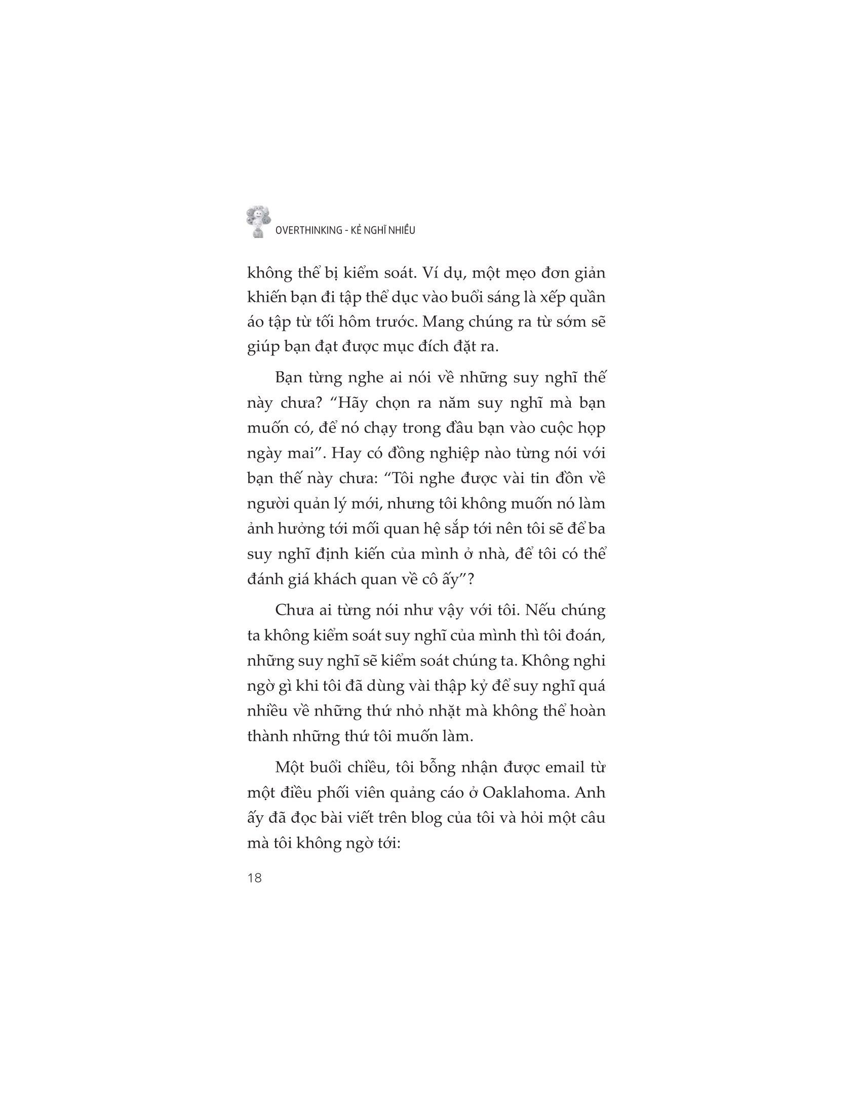 Overthinking là kẻ thù tệ hại nhất, giữ chân bạn trên con đường thực hiện những gì m.ình muốn. Nó là một trong những thứ đắt đỏ nhất trên đời, bởi vì, nó tiêu tốn công sức, làm lãng phí thời gian và cả sự sáng tạo. Đây chính xác là một loại dịch bệnh của việc dừng tiến lên, là cơn sóng thần của sự bế tắc.