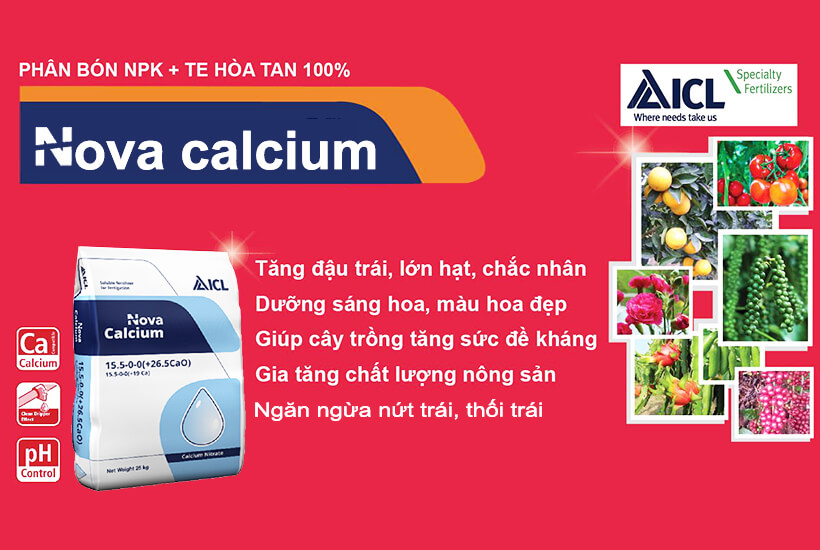 PHÂN BÓN ISRAEL CANXI HÒA TAN Nova Calcium 15.5-0-0(+26.5Cao) Phân Hoàn Tan 100% TRONG NƯỚC, CHUYÊN DÙNG CHO TƯỚI NHỎ GIỌT VÀ TƯỚI PHUNThành Phần Phân Bón Canxi cho cây Nova Calcium 15.5-0-0(+26.5 ...