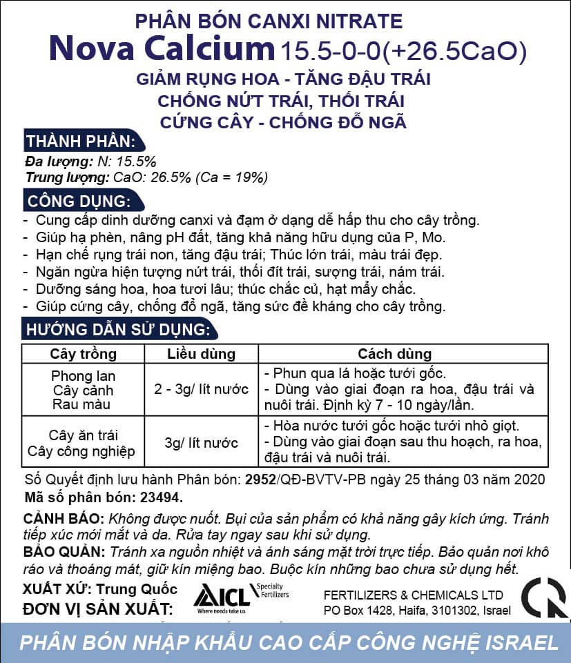 Hướng Dẫn Sử Dụng Phân Bón Nova Calcium 15.5-0-0(+26.5Cao) Israel