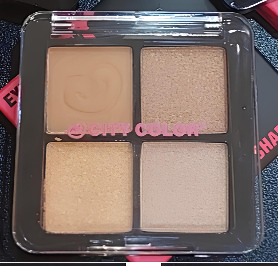 bảng phấn mắt 4 ô "The Nudes Palette" của City Color, một bảng màu mắt với các tông màu trung tính, tự nhiên, phù hợp với phong cách trang điểm hàng ngày. Bảng phấn mắt