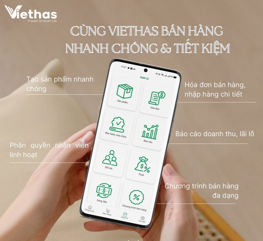 Kết nối thiết bị bán hàng Tích hợp máy quét mã vạch, máy in hoá đơn, két tiền, máy in mã vạch … giúp cửa hàng của bạn quản lý, bán hàng chuyên nghiệp hơn.