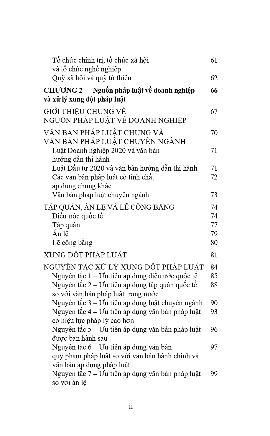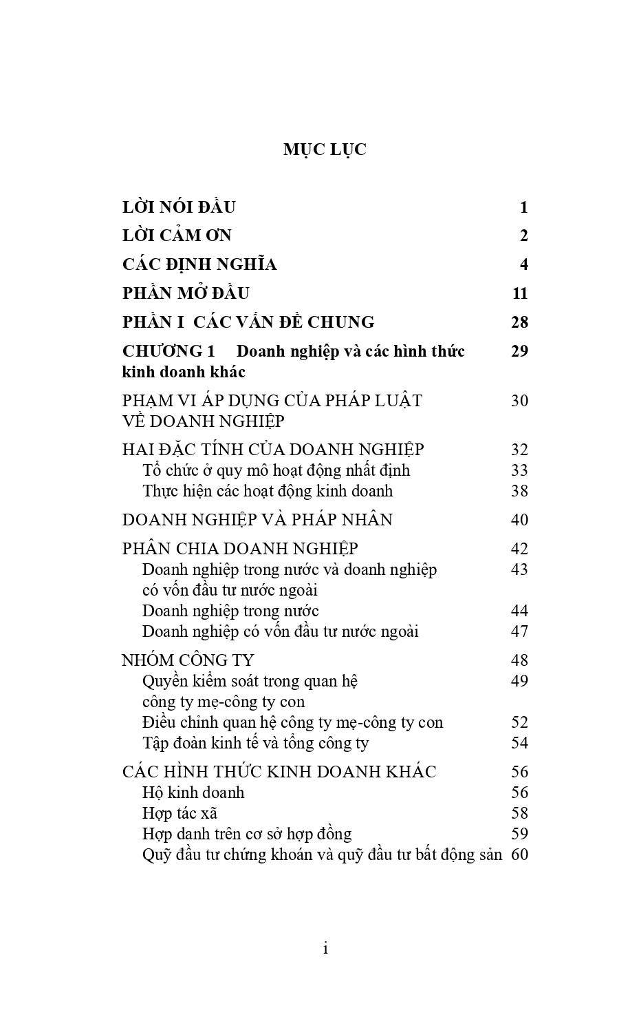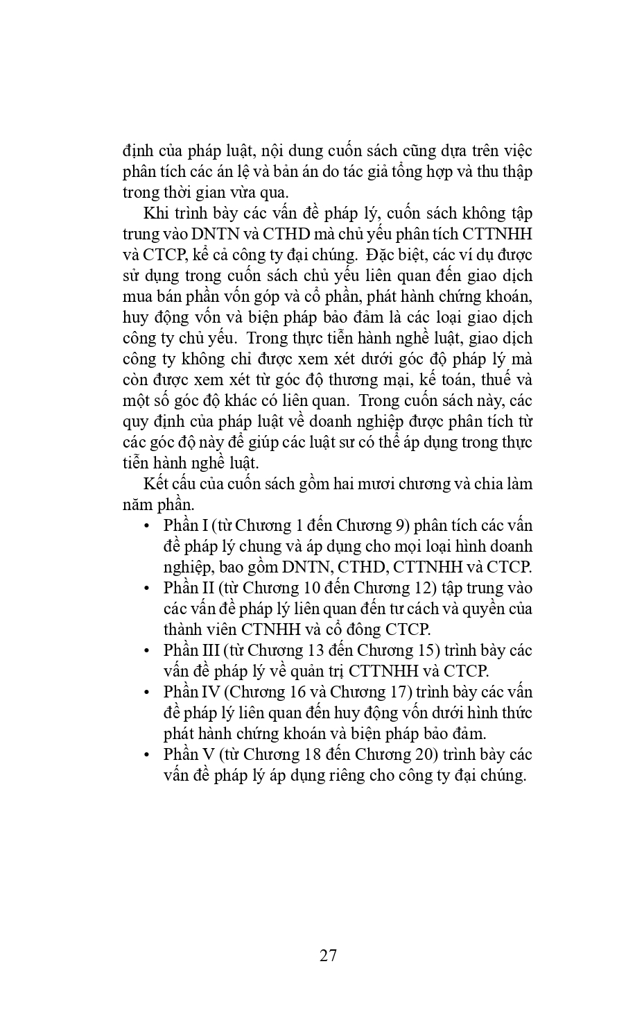 • Phần I (từ Chương 1 đến Chương 9) phân tích các vấn đề pháp lý chung và áp dụng cho mọi loại hình doanh nghiệp.