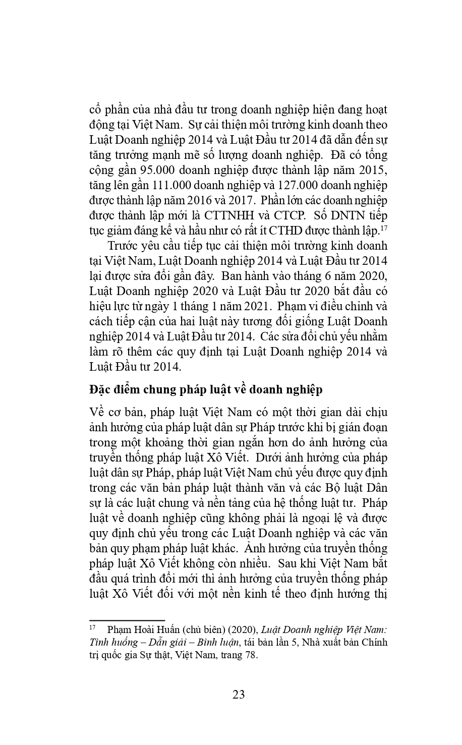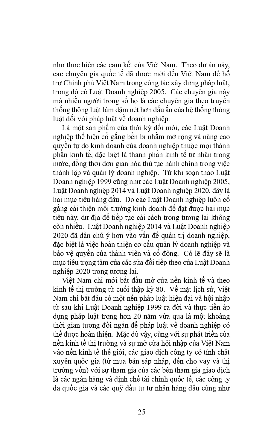 Cuốn sách đầu tiên nghiên cứu một cách có hệ thống các vấn đề pháp luật về doanh nghiệp của Việt Nam từ cả góc độ lý thuyết và thực tiễn, tập trung vào các giao dịch mua bán doanh nghiệp và tài chính-ngân hàng có yếu tố nước ngoài dựa trên kinh nghiệm hành nghề thực tế của luật sư Trương Nhật Quang. Công ty luật YKVN nơi tác giả làm việc là một trong các công ty luật hàng đầu Việt Nam và tham gia tư vấn trong nhiều giao dịch giao dịch mua bán doanh nghiệp và tài chính-ngân hàng có yếu tố nước ngoài quan trọng nhất trên thị trường.