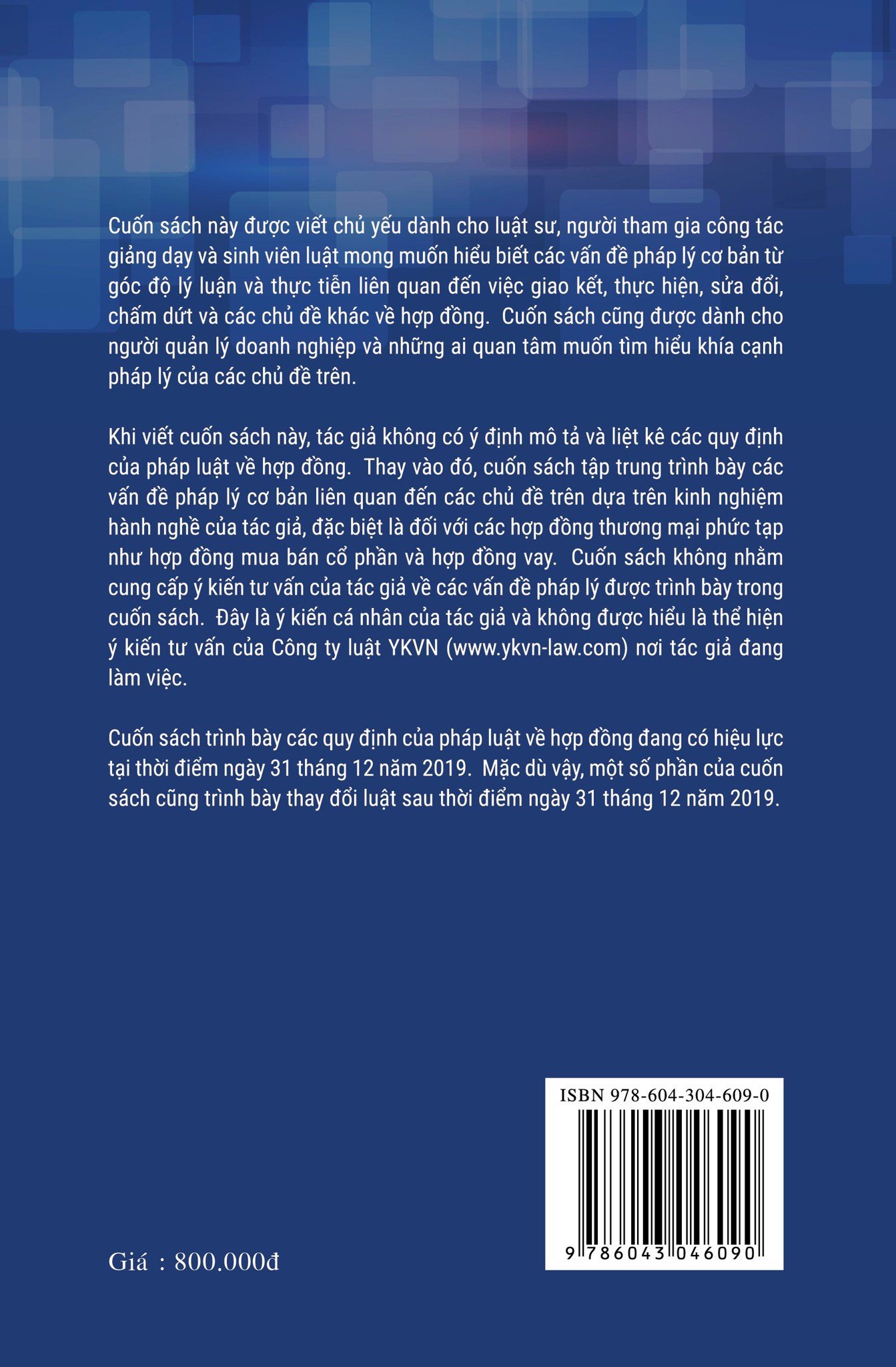 - Đây là cuốn sách đầy đủ nhất liên quan đến pháp luật về hợp đồng. Trải dài trong gần 900 trang, cuốn sách phân tích các vấn đề liên quan đến (i) giao kết hợp đồng; (ii) hiệu lực hợp đồng; (iii) nội dung hợp đồng; (iv) vi phạm hợp đồng và biện pháp khắc phục; (v) miễn trừ trách nhiệm; (vi) chuyển giao quyền và nghĩa vụ; (vii) quyền của bên thứ ba trong hợp đồng vì lợi ích của bên thứ ba; và (viii) nguyên tắc chọn pháp luật áp dụng và cơ quan giải quyết tranh chấp hợp đồng.