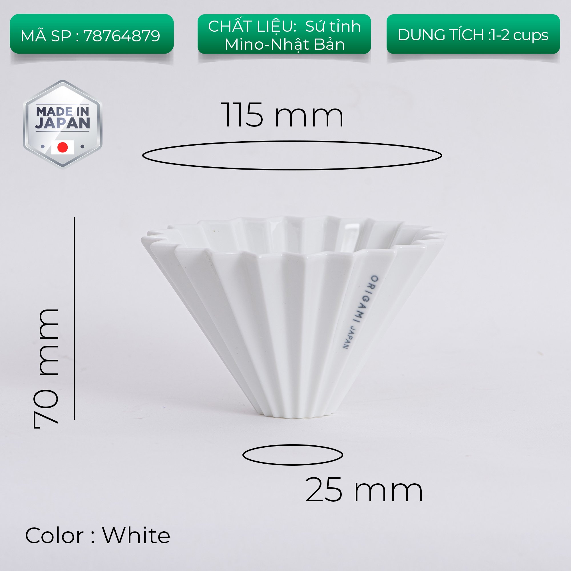 Phễu Origami được phát triển để tạo ra những ly cà phê Pour-over hoàn hảo. Origami là phễu lọc cà phê được làm hoàn toàn từ gốm sứ Mino (loại sứ cao cấp với 400 năm lịch sử của Nhật Bản). Gốm sứ Mino có chất lượng rất cao với khả năng dẫn nhiệt và giữ nhiệt tốt.