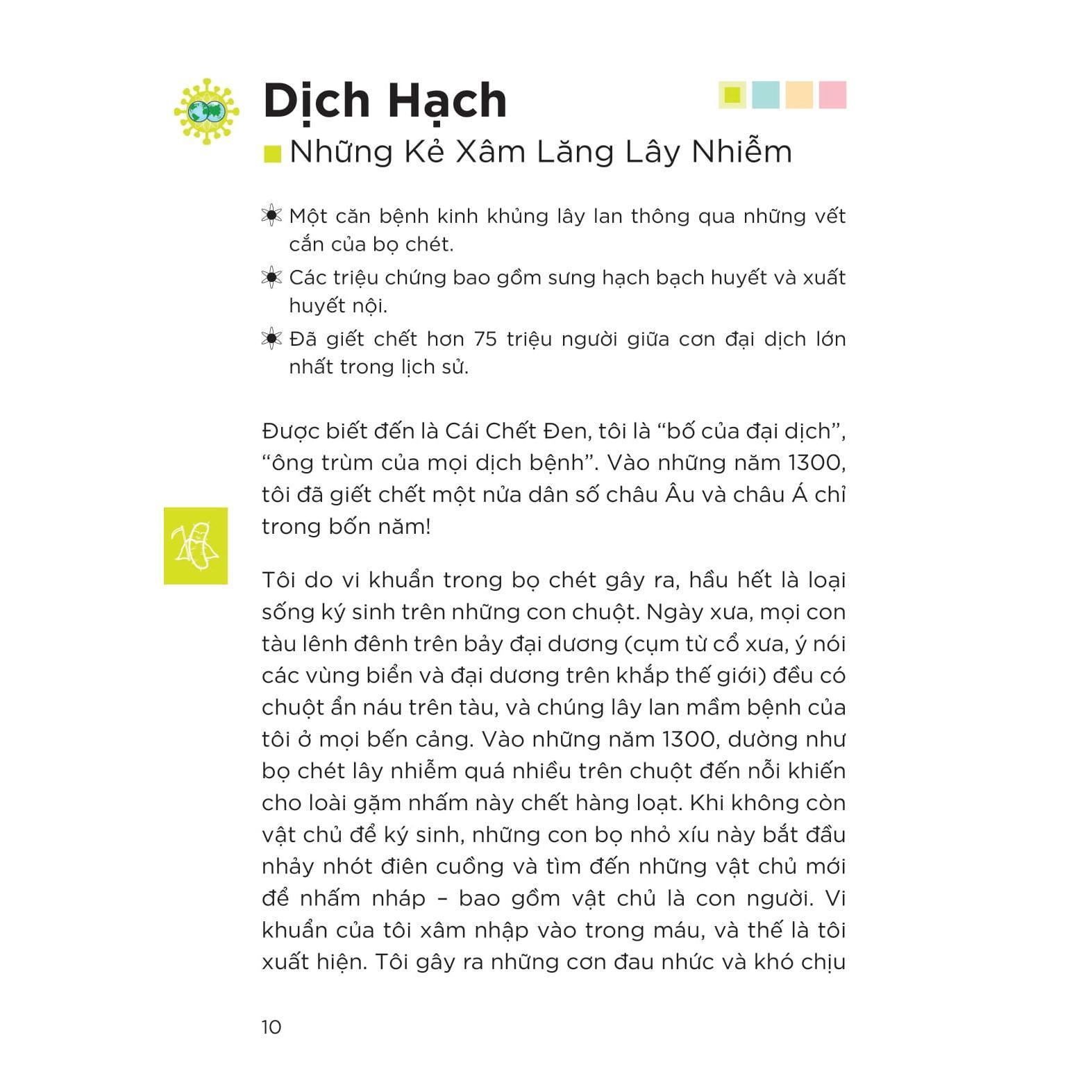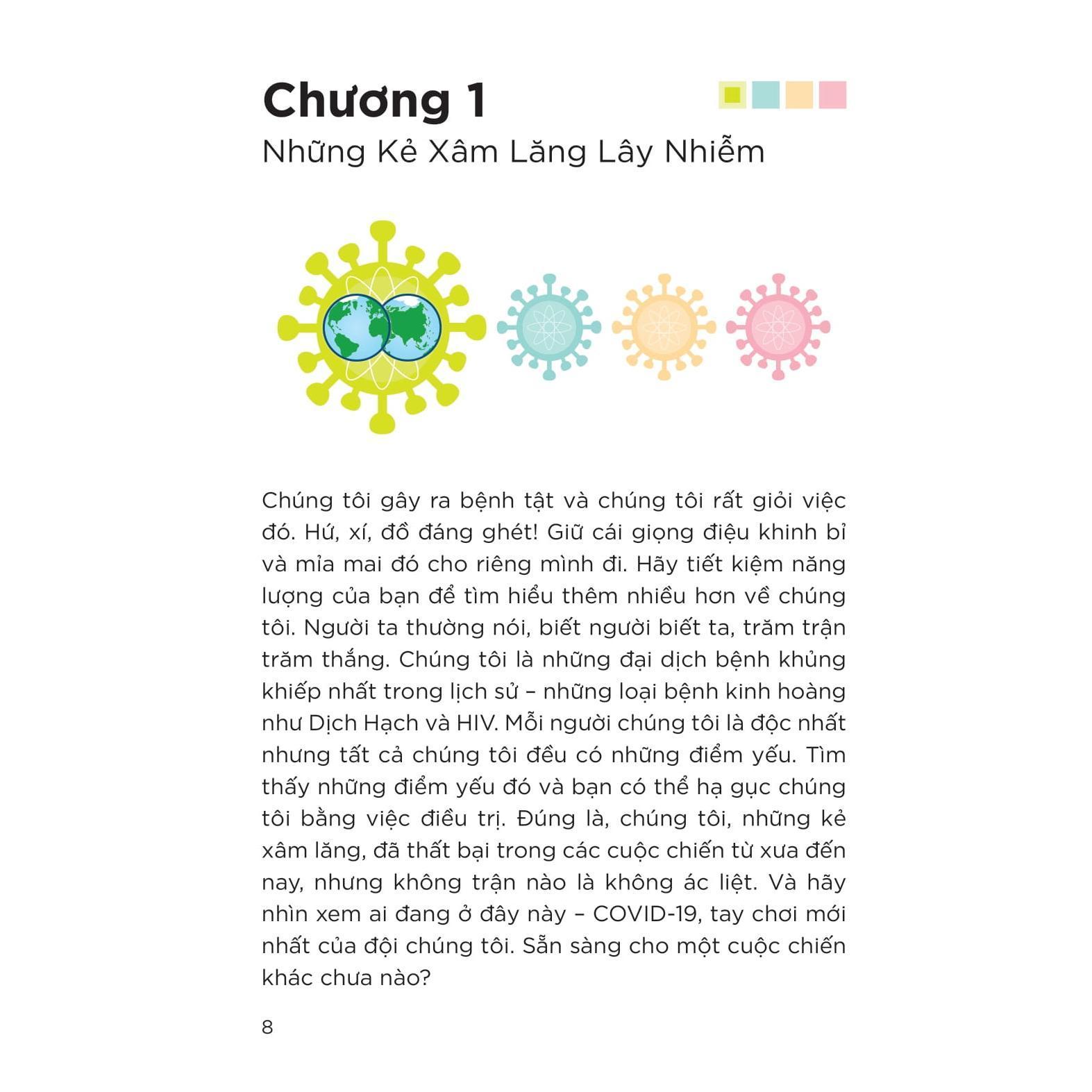 Cuốn sách đưa các bạn đi khám phá thế giới vi khuẩn siêu nhỏ, từ những căn bệnh đã làm thay đổi lịch sử đến đại dịch Covid-19. Với cách kể chuyện hài hước và những hình ảnh sinh động, “Bệnh truyền nhiễm – Bình tĩnh để bảo vệ mình” sẽ giúp bạn hiểu rõ hơn về hệ miễn dịch của cơ thể, cách chúng ta chống lại bệnh tật và tầm quan trọng của việc đeo khẩu trang. Đặc biệt, cuốn sách còn chia sẻ những bí quyết giúp giữ gìn sức khỏe và tinh thần thật tốt trong những thời điểm khó khăn.