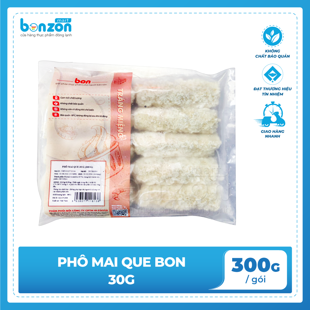 Với sản phẩm tươi sống, trọng lượng thực tế có thể chênh lệch khoảng 10%. ĐỊNH LƯỢNG: 300g/gói THÀNH PHẦN: Phomai mozzarella (45%), batter mix, panko, bột Unicho CÁCH CHẾ BIẾN: Không rã đông.