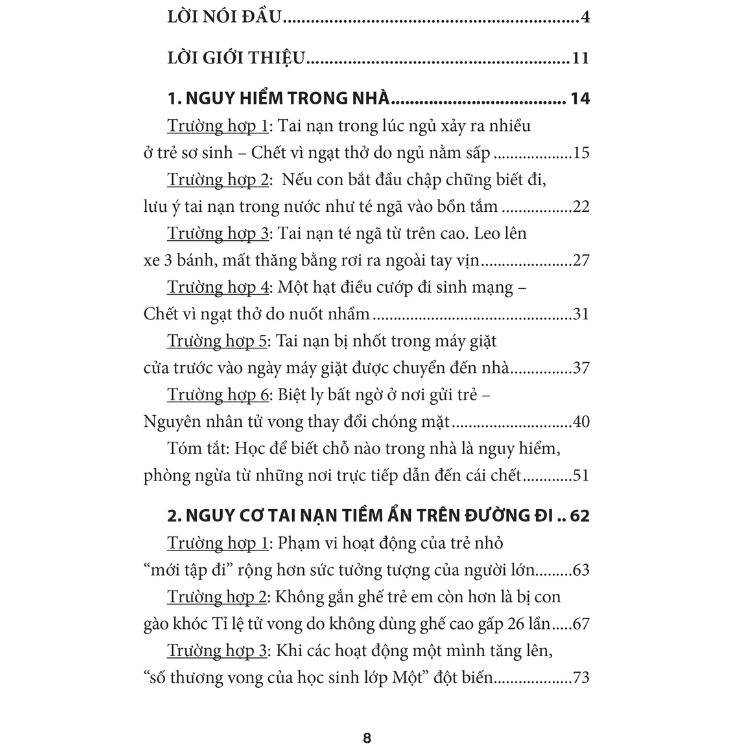 • Được biên tập lại từ loạt phóng sự ấy, Phòng tránh tai nạn ở trẻ nhỏ đề cập đến các nguy cơ tai nạn khác nhau theo giai đoạn trưởng thành của trẻ, từ đó đưa ra các biện pháp phòng tránh có thể áp dụng tại nhà, tại trường học, và trên toàn xã hội.